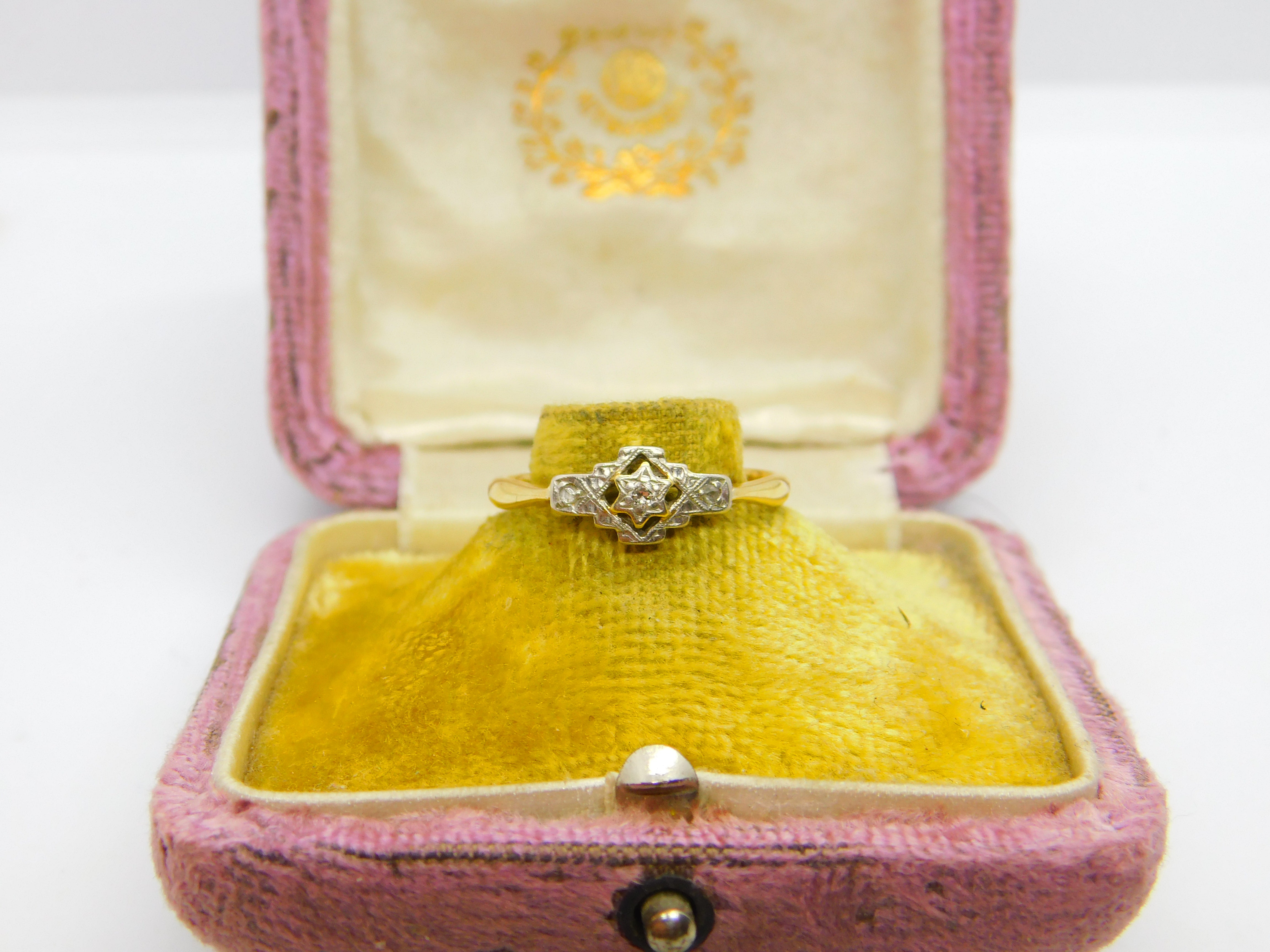 Victorian 18ct Yellow Gold 0.1ct Diamond Solitaire Ring 1893 Birmingham Antique