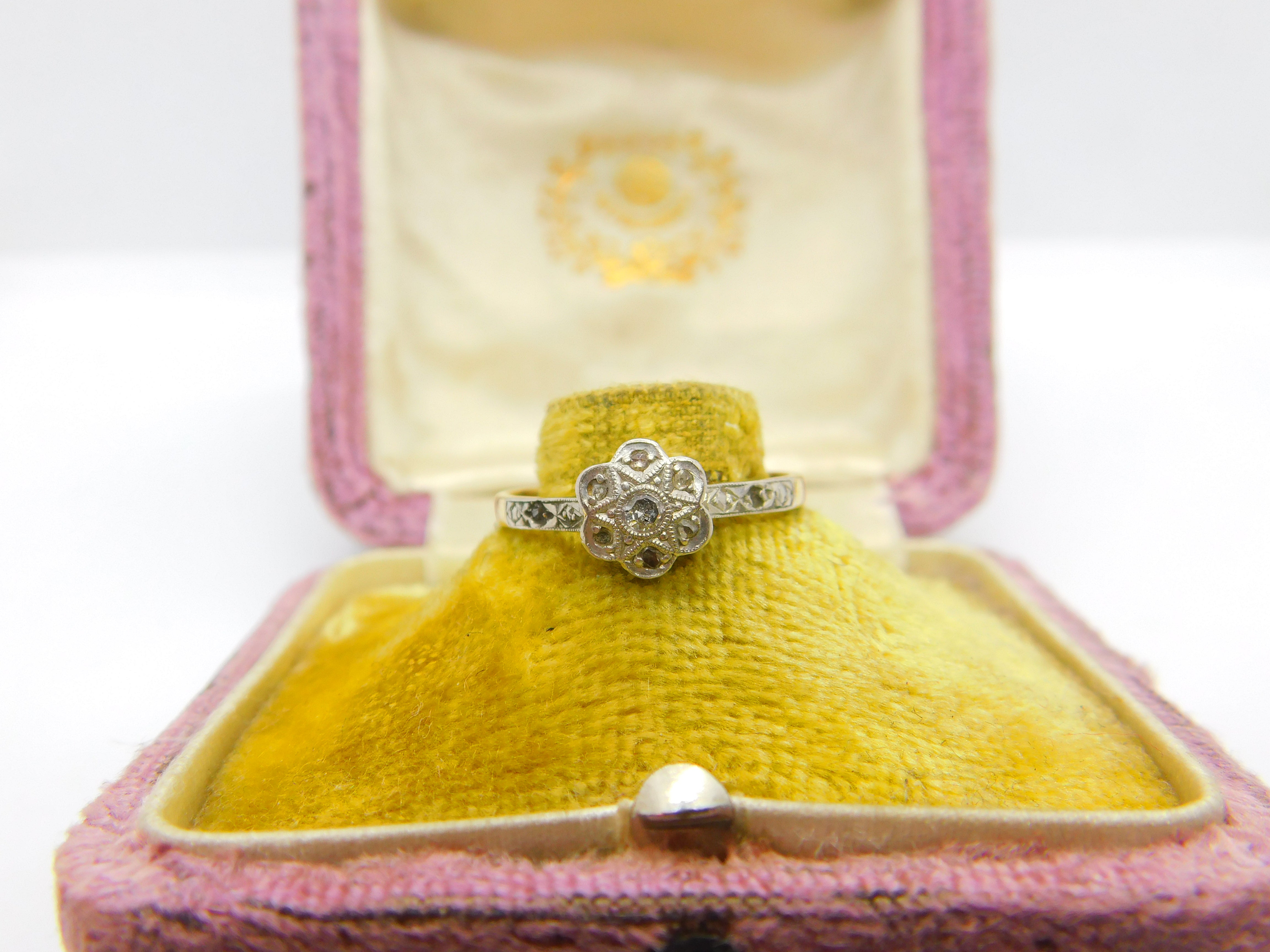 Victorian 18ct Yellow Gold 0.1ct Diamond Set Floral Cluster Ring Antique c1890