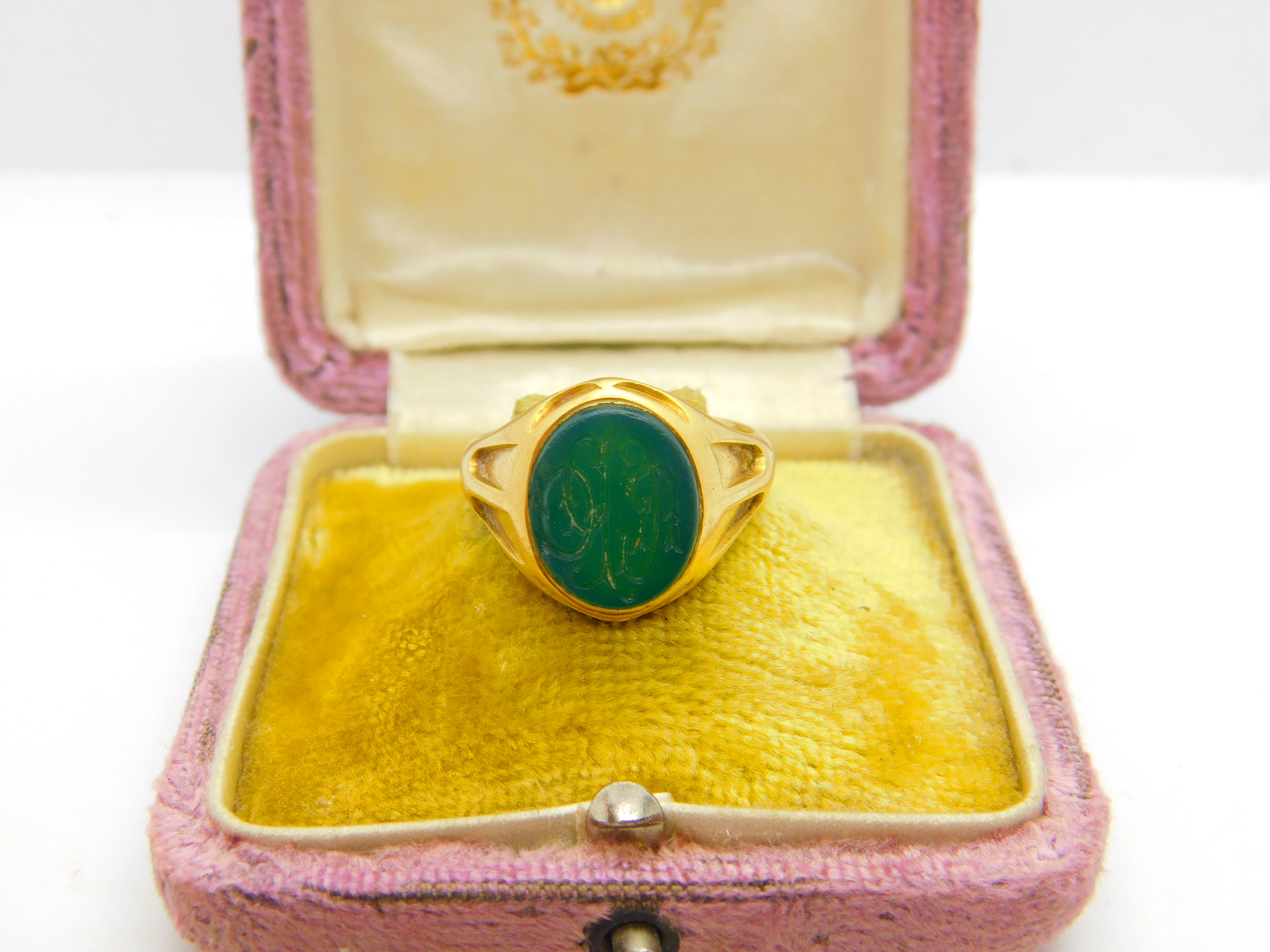 Victorian 18ct Yellow Gold Carved Monogram Intaglio Signet Ring 1866 London