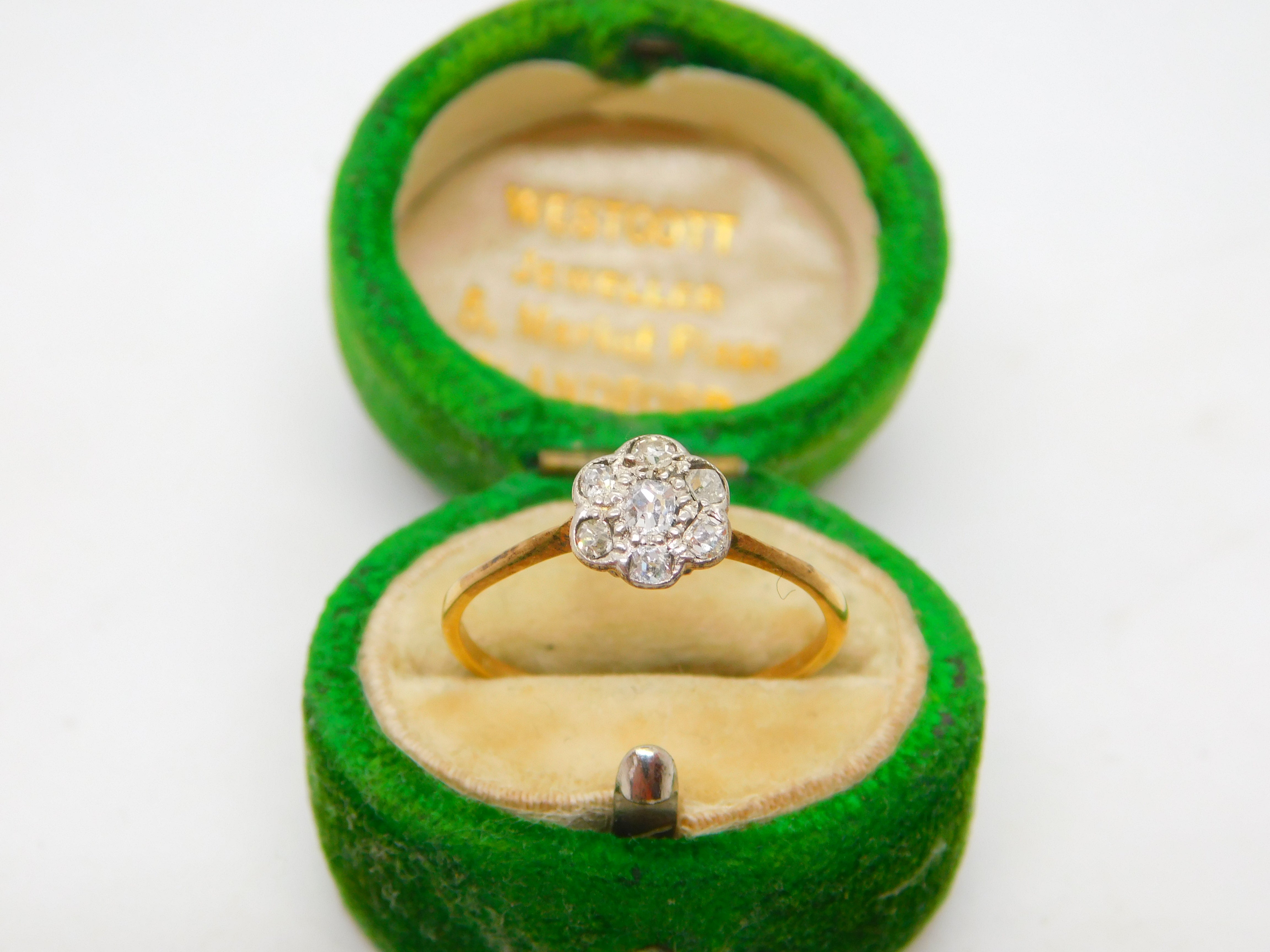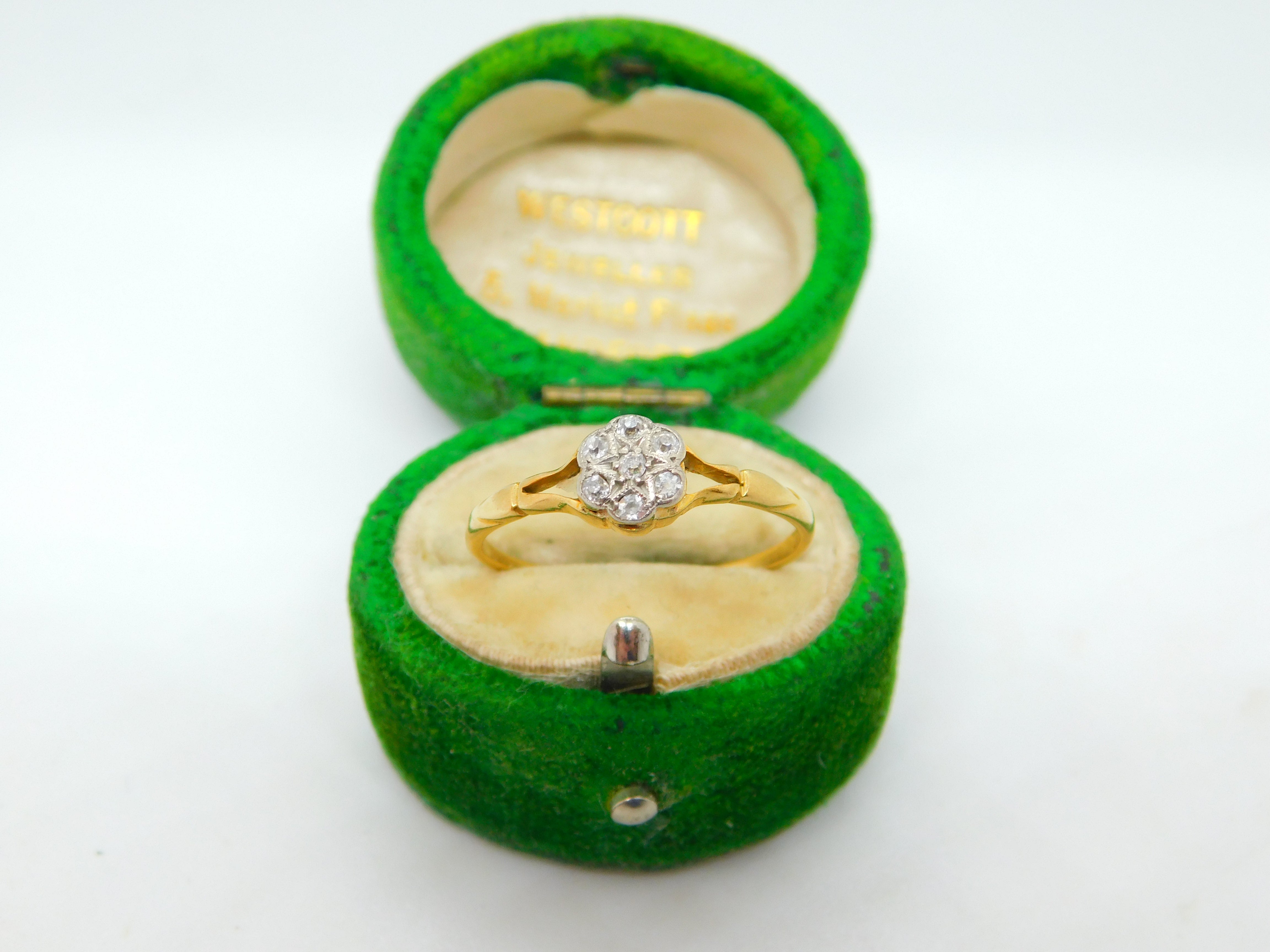 Victorian 18ct Yellow Gold Old Cut Diamond Daisy Floral Ring Antique c1890