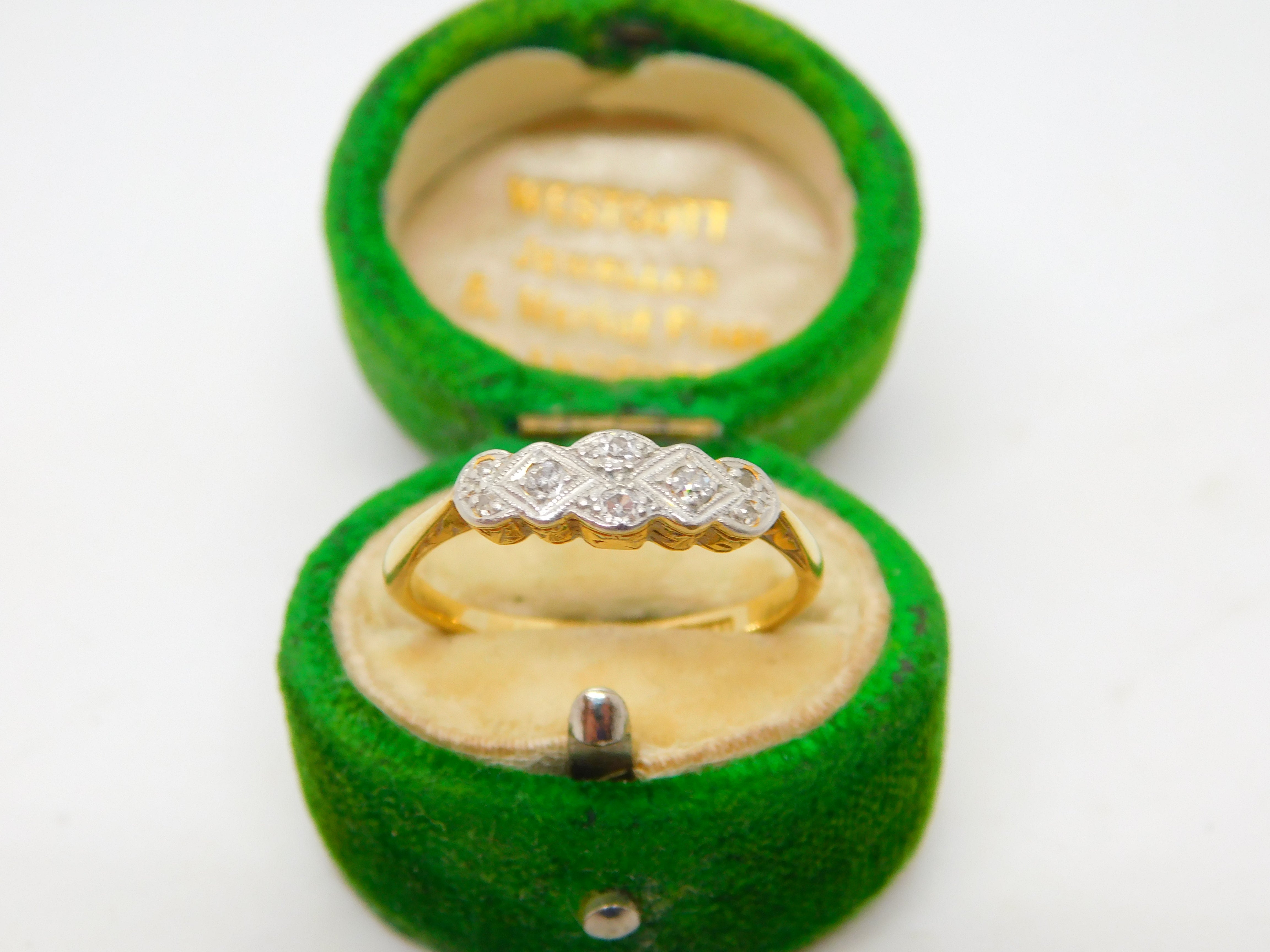 Victorian 18ct Yellow Gold Old Cut Diamond Set Dress Ring Antique c1890