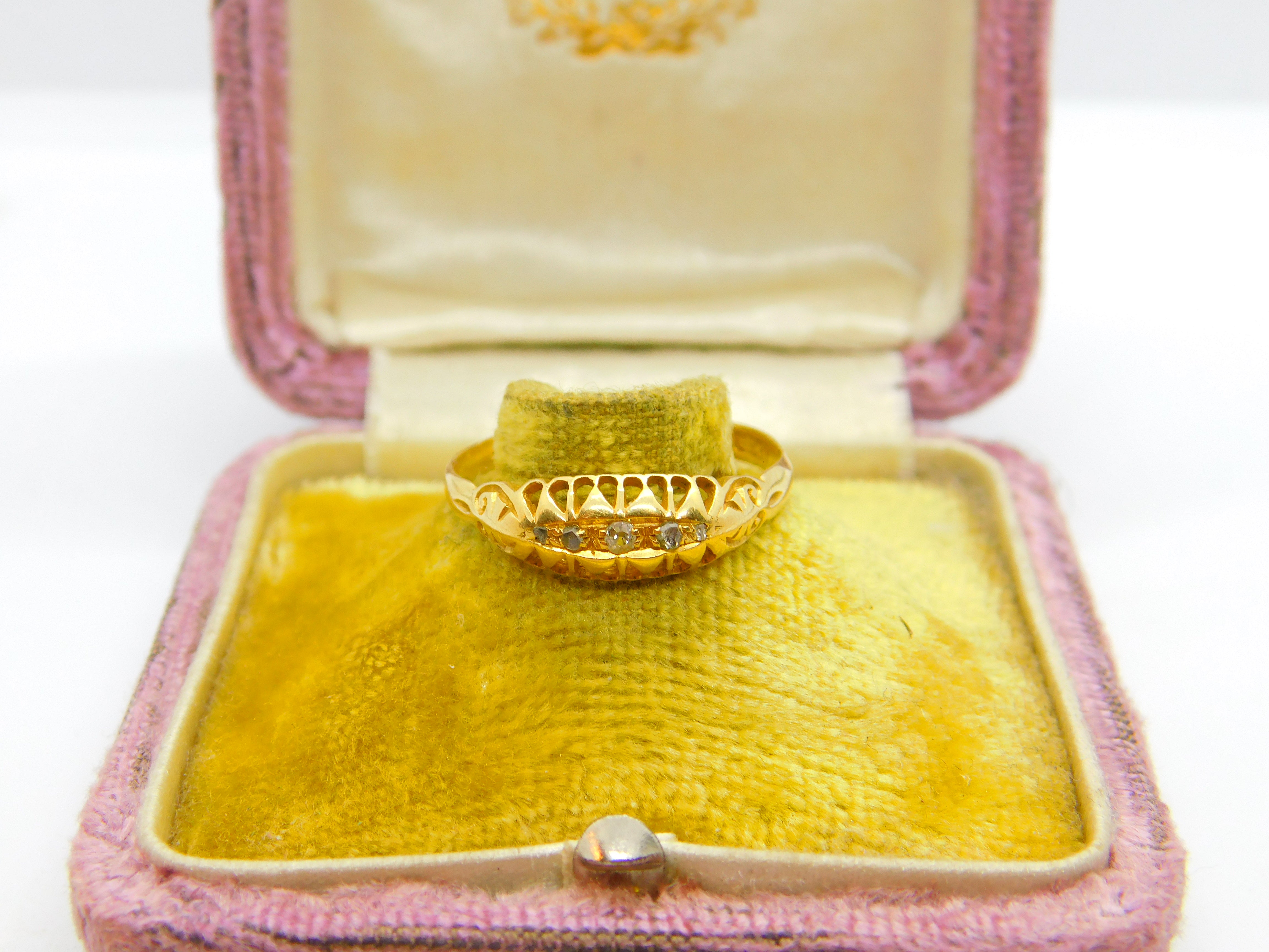 Victorian 18ct Yellow Gold Five-Stone Diamond Boat Ring 1896 Birmingham