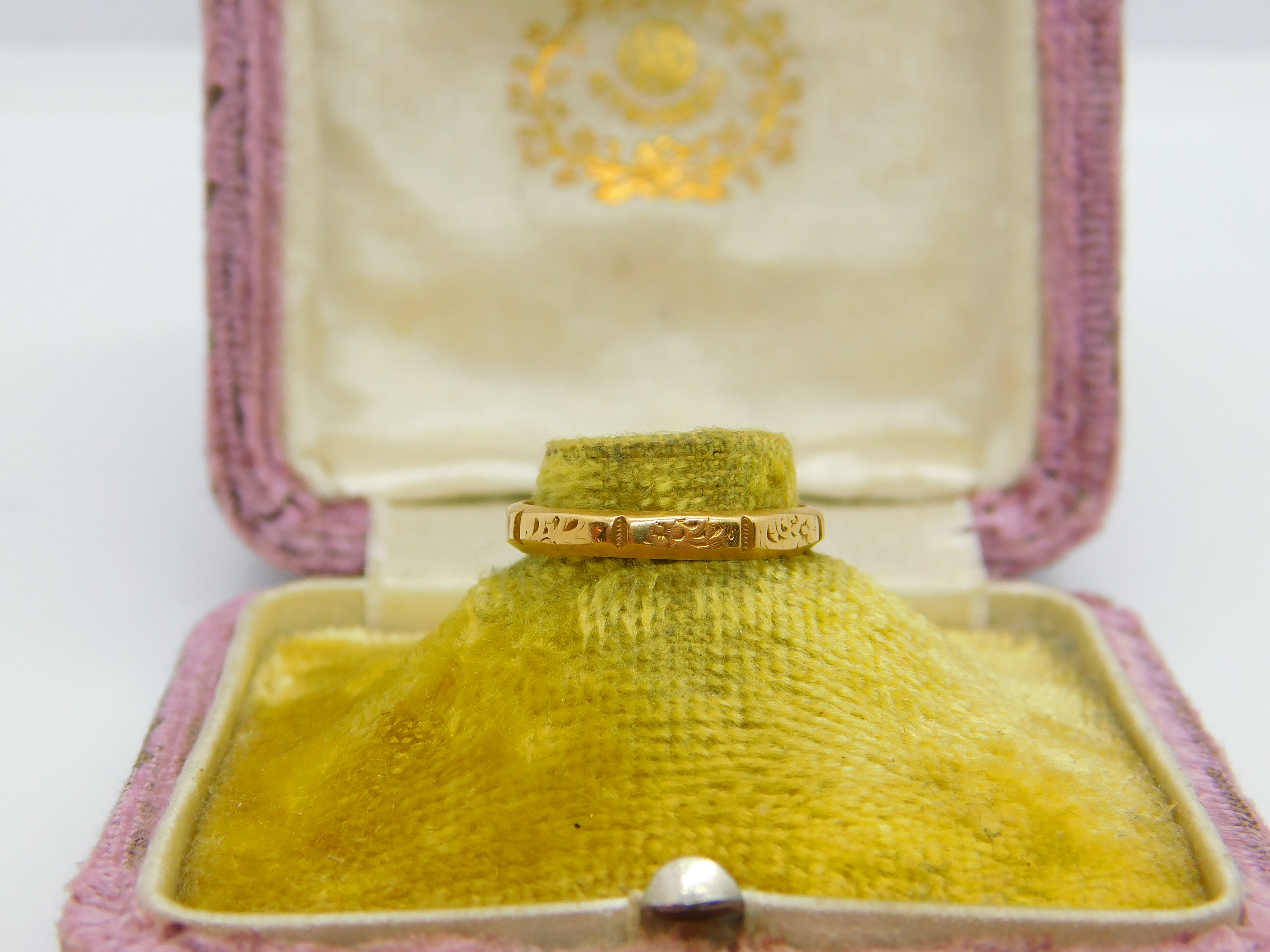 Victorian 18ct Yellow Gold Floral Pattern Wedding Band 1881 Chester Antique