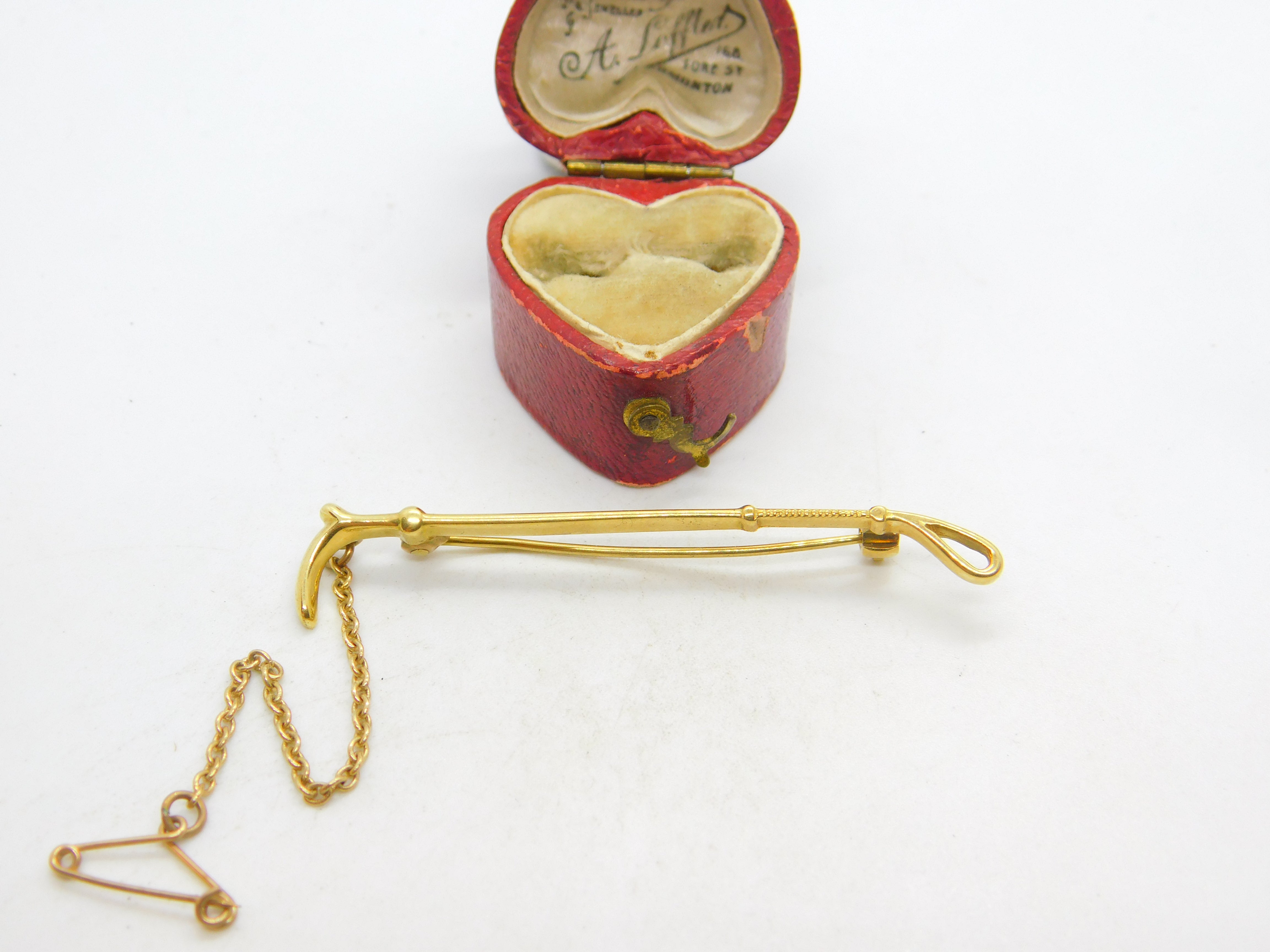 Victorian 18ct Yellow Gold Hunting Crop Stock Pin or Brooch Antique c1900
