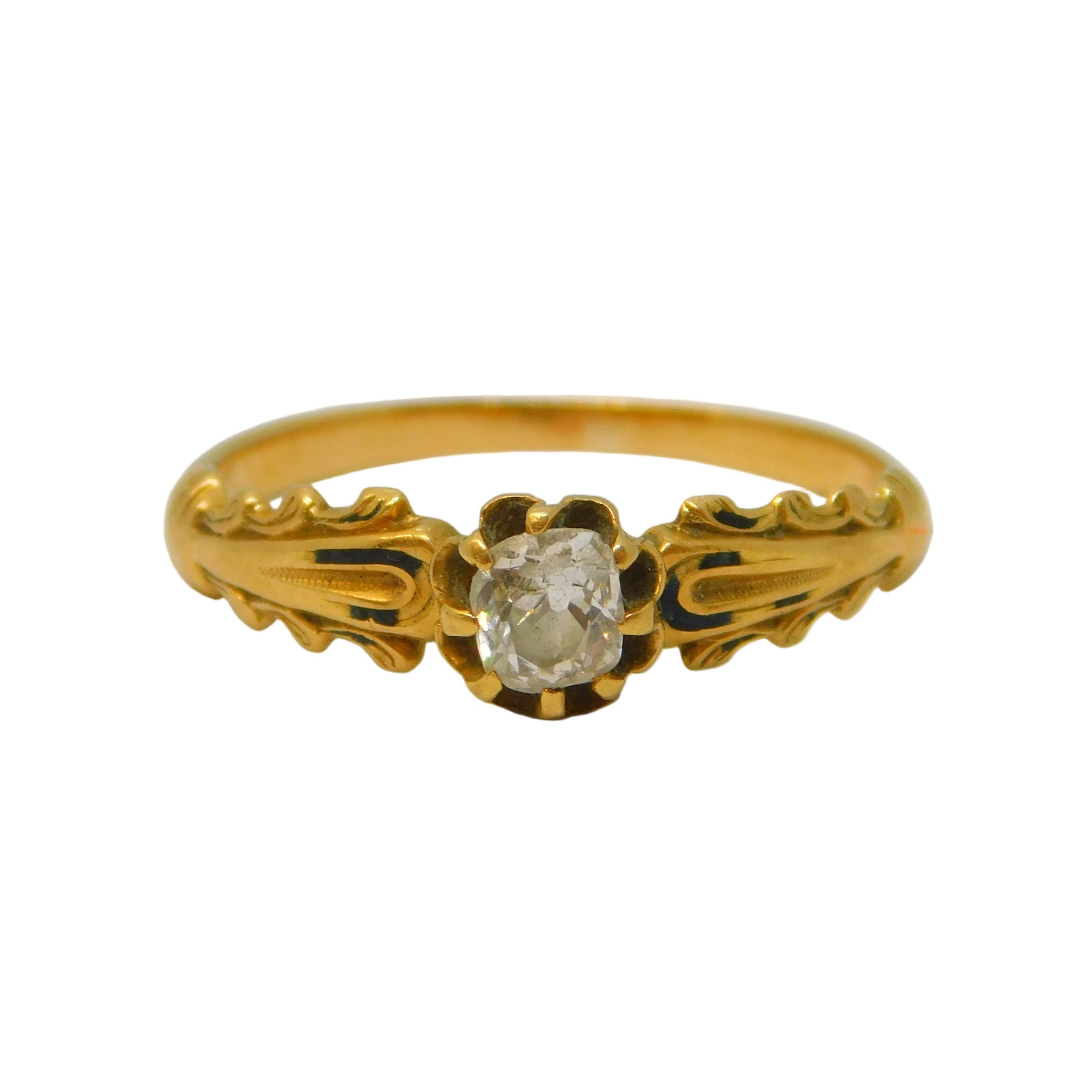 Victorian 18ct Yellow Gold Old-Cut 0.2ct Diamond Mourning Ring Antique c1840