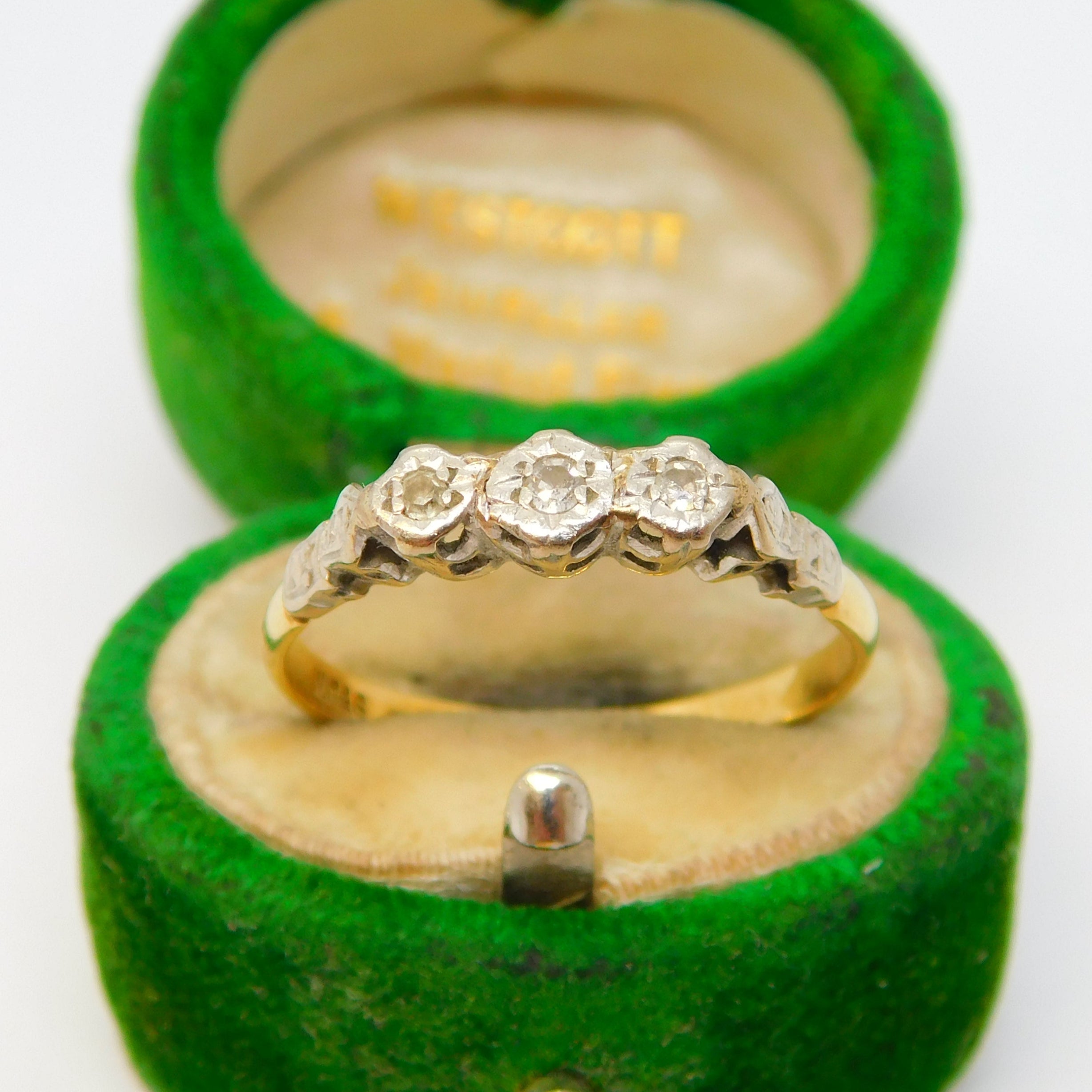 Victorian 18ct Yellow Gold Platinum Set Diamond Three-Stone Ring Antique c1890