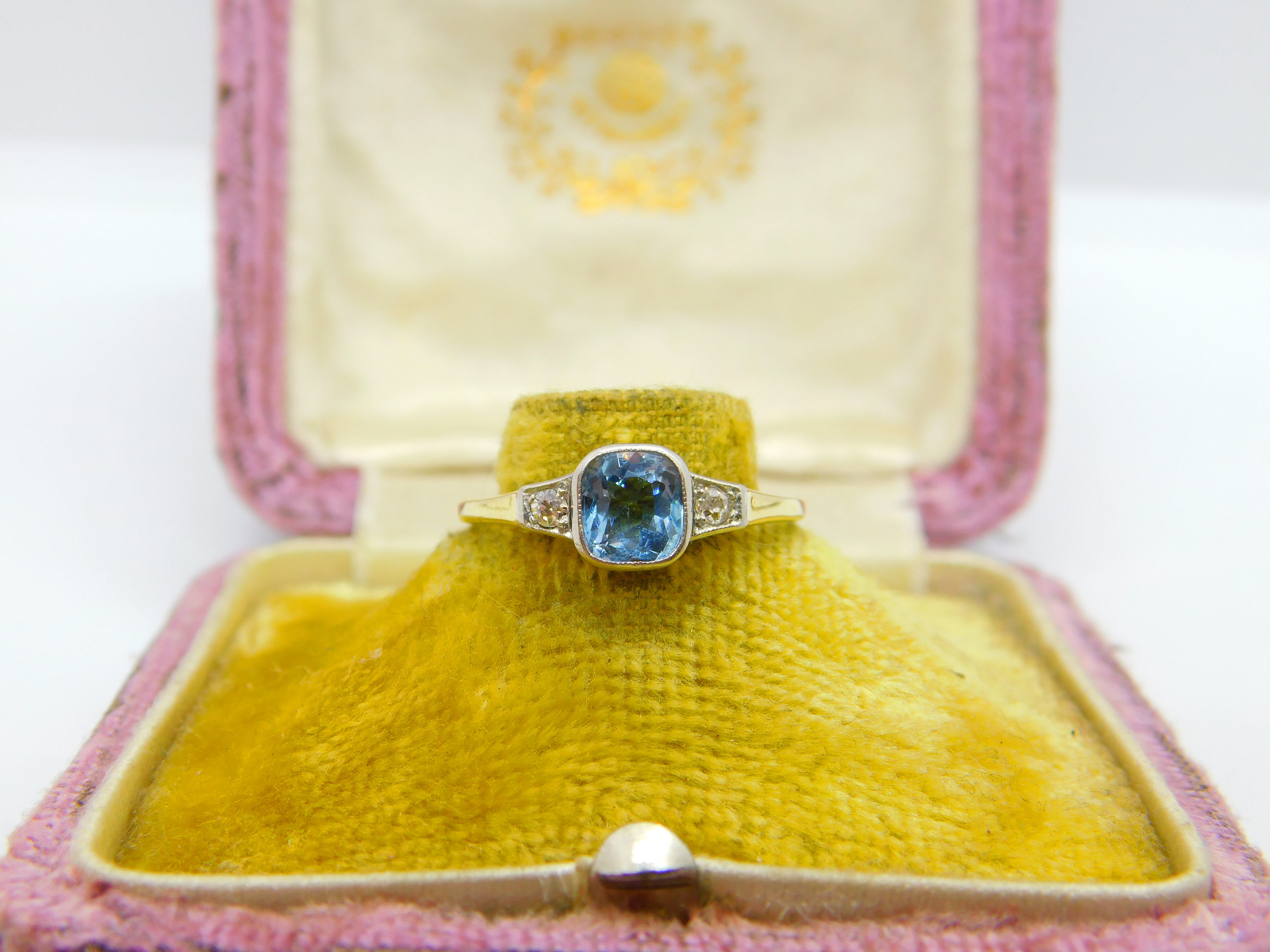 Victorian 18ct Yellow Gold, Aquamarine & Diamond Dress Ring c1900 Antique