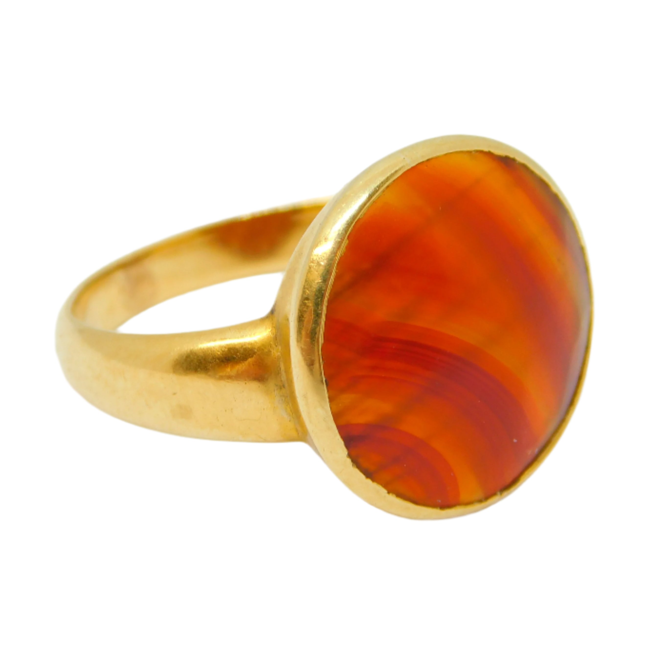 Victorian 18ct Yellow Gold Red Carnelian Agate Set Signet Ring Antique c1860