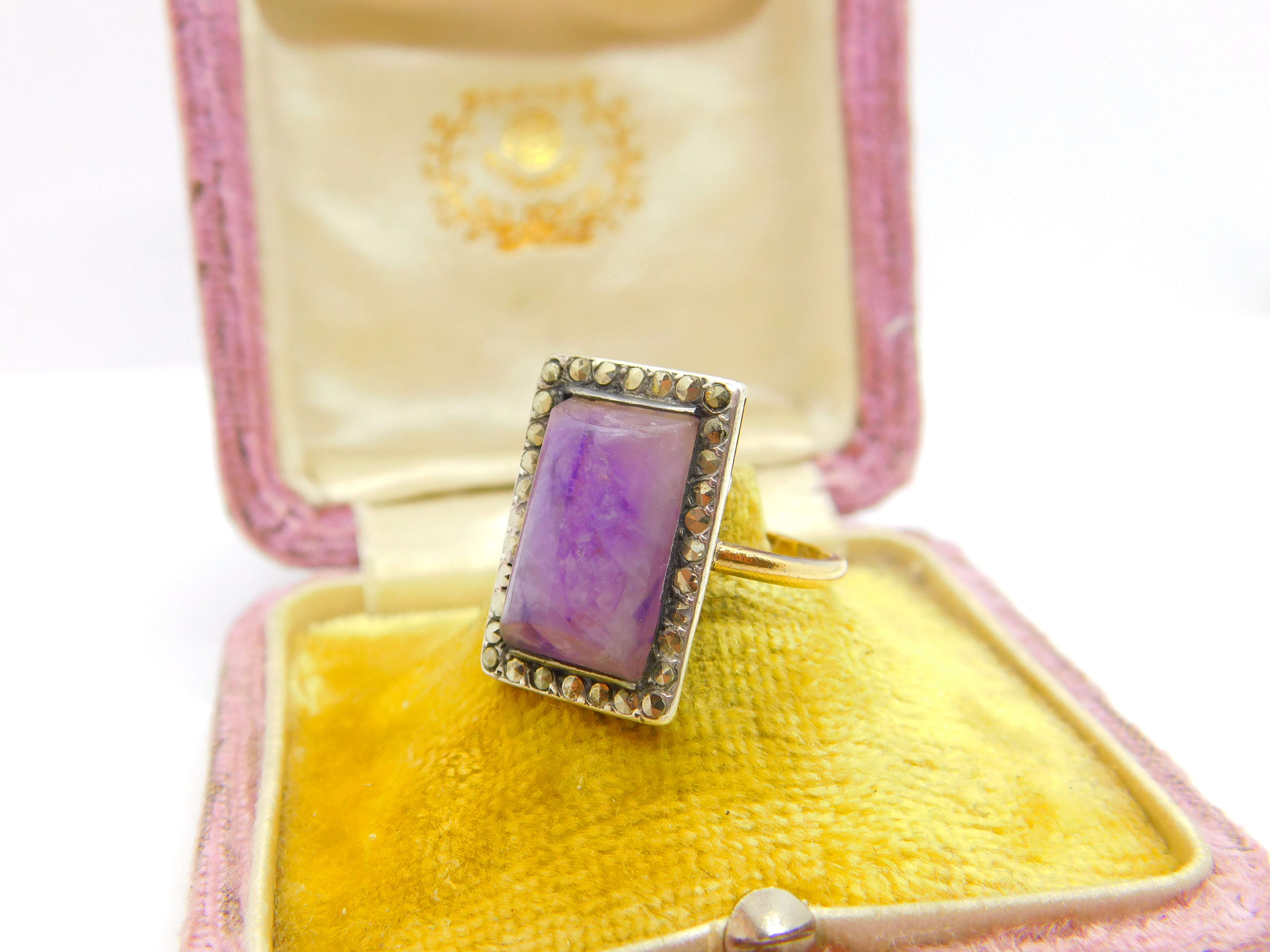 Victorian 22ct Yellow Gold, Amethyst & Marcasite Set Dress Ring 1859 London