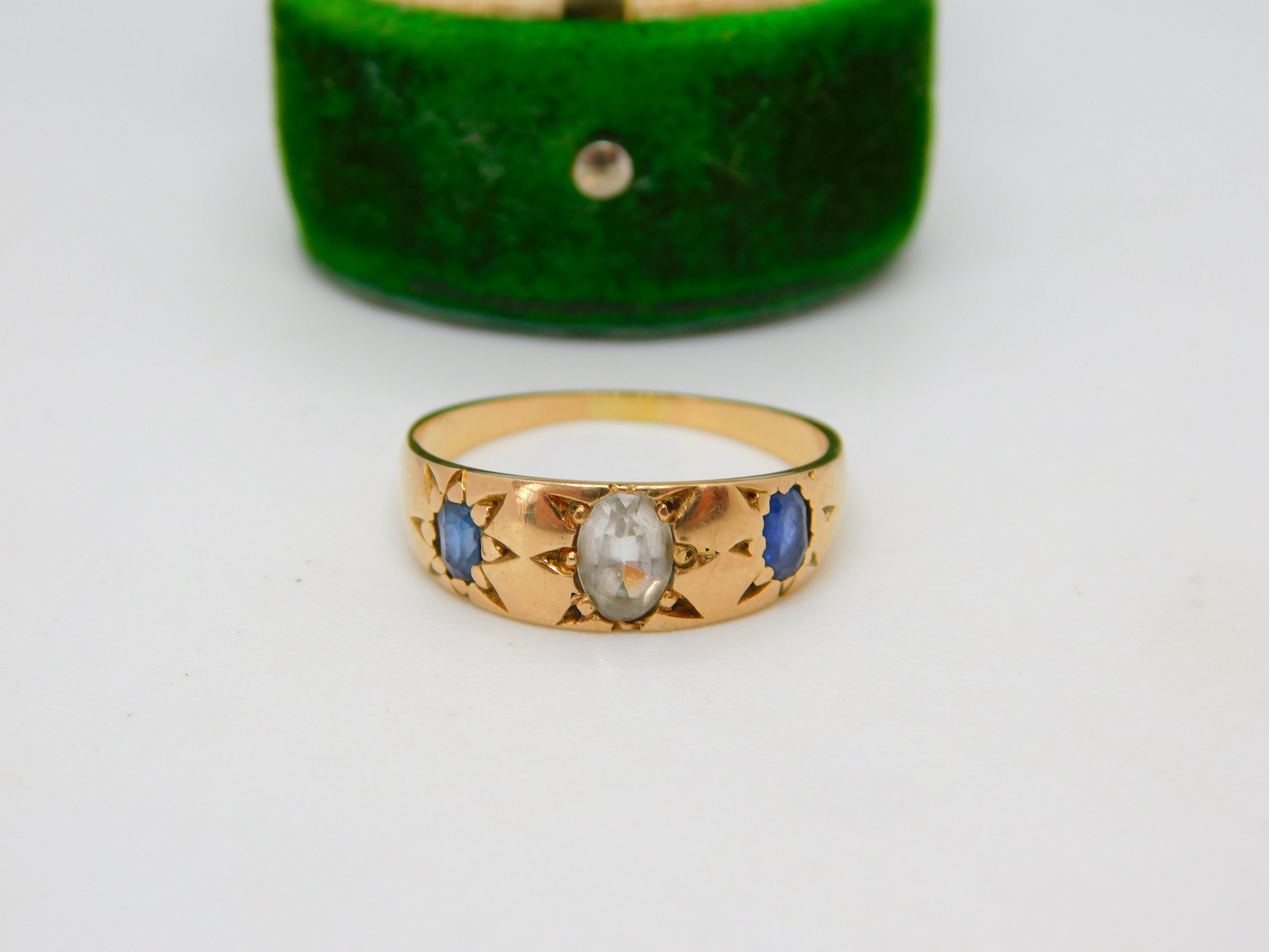Victorian 22ct Yellow Gold, Diamond & Sapphire Engagement Ring Antique 1888