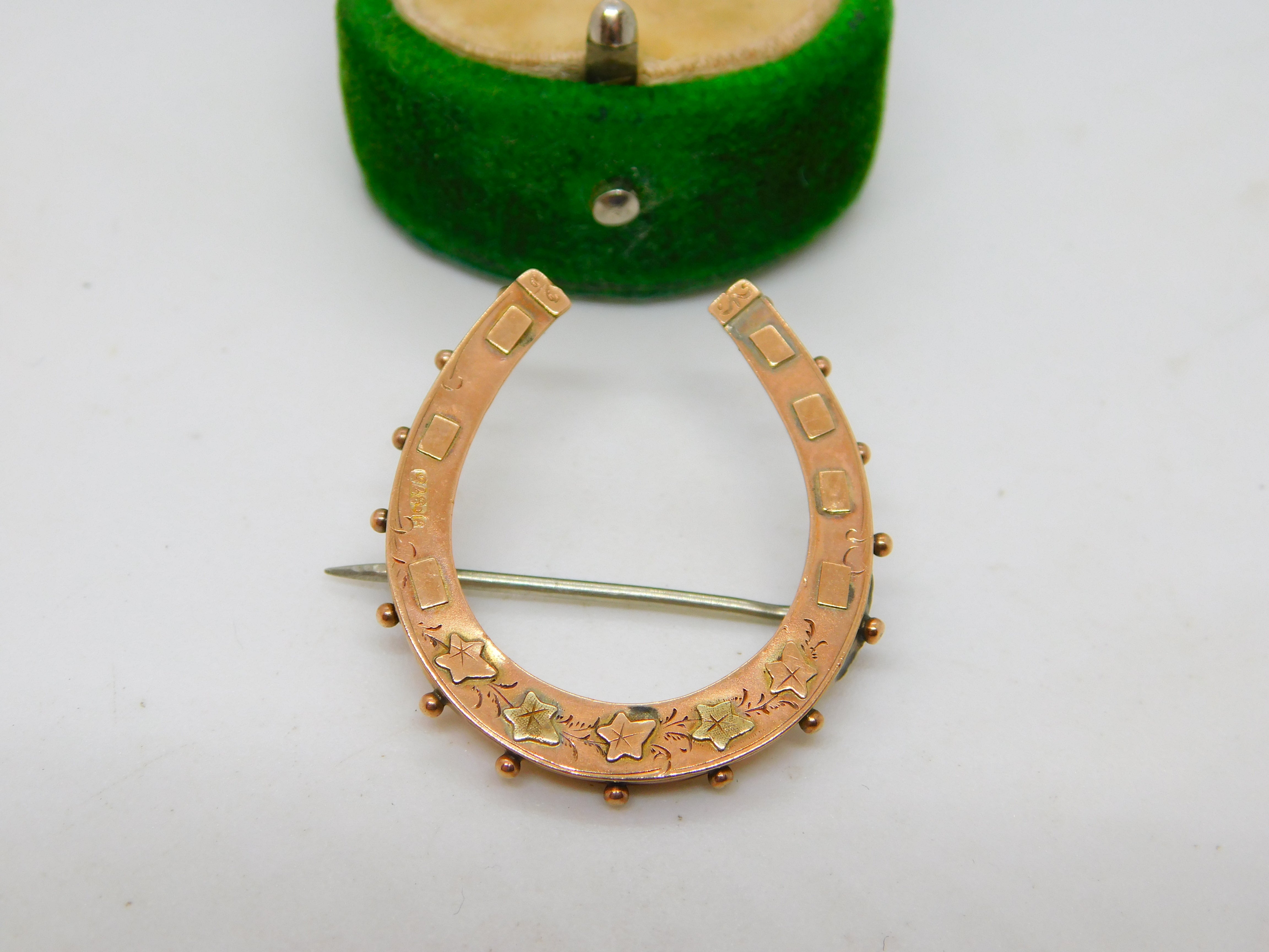 Victorian 9ct -Bi-Colour Gold Good Luck Horseshoe Brooch Antique 1890 Birmingham