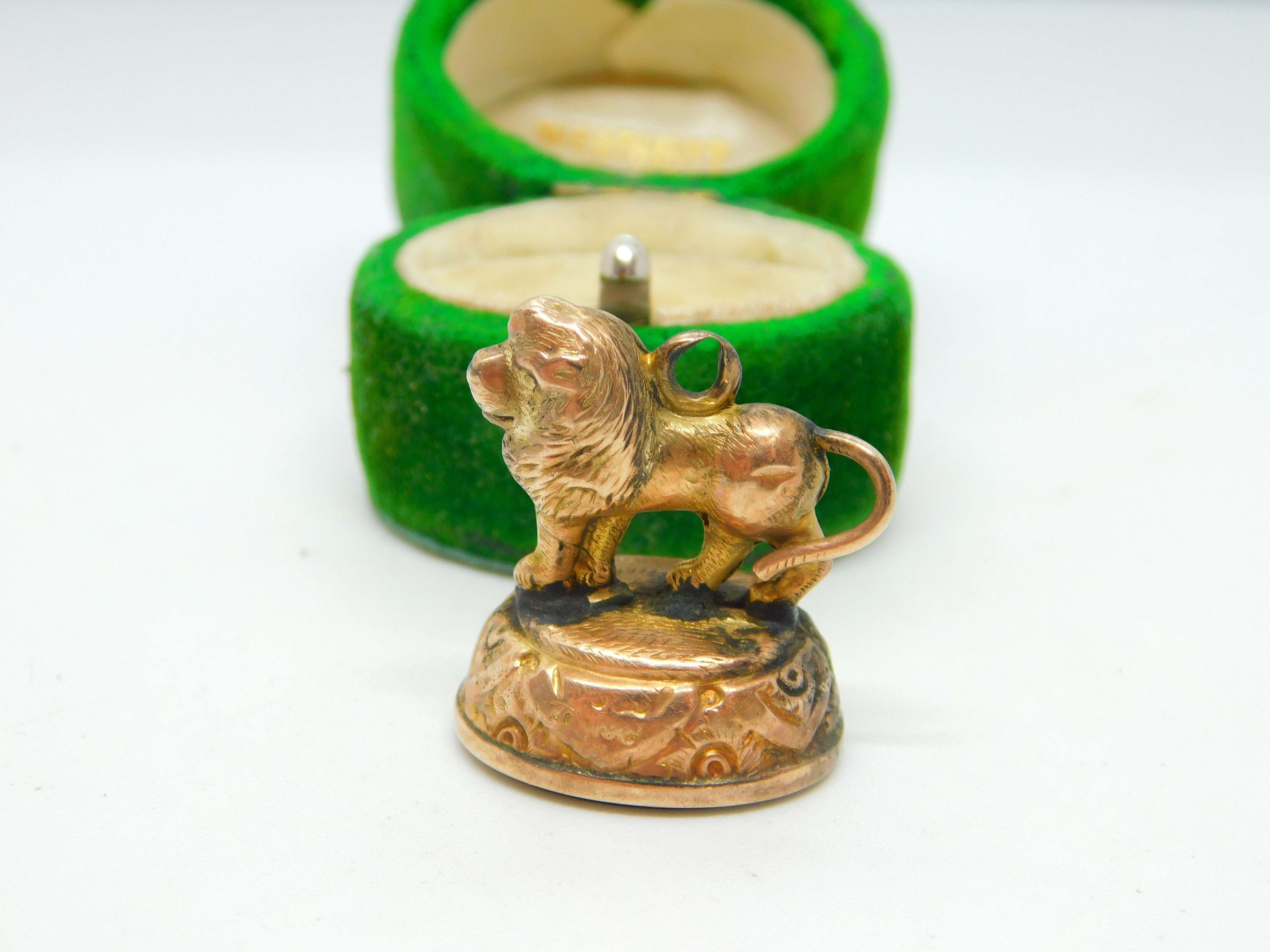 Victorian 9ct Gold & Bloodstone Set Lion Fob Seal Pendant Antique c1890