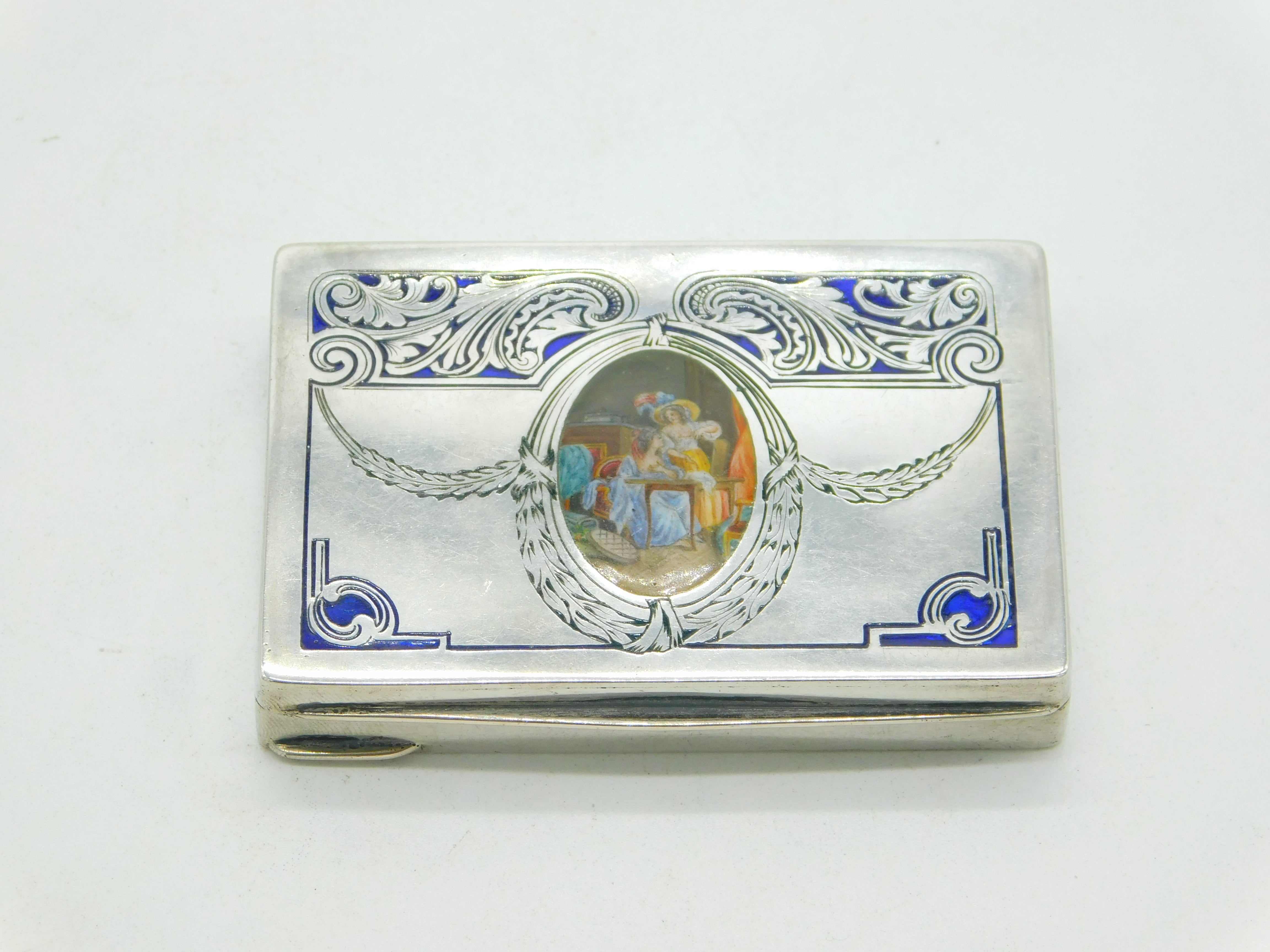 Victorian 800 Silver & Enamel Erotic Lady Decoration Snuff Box c1880 Antique