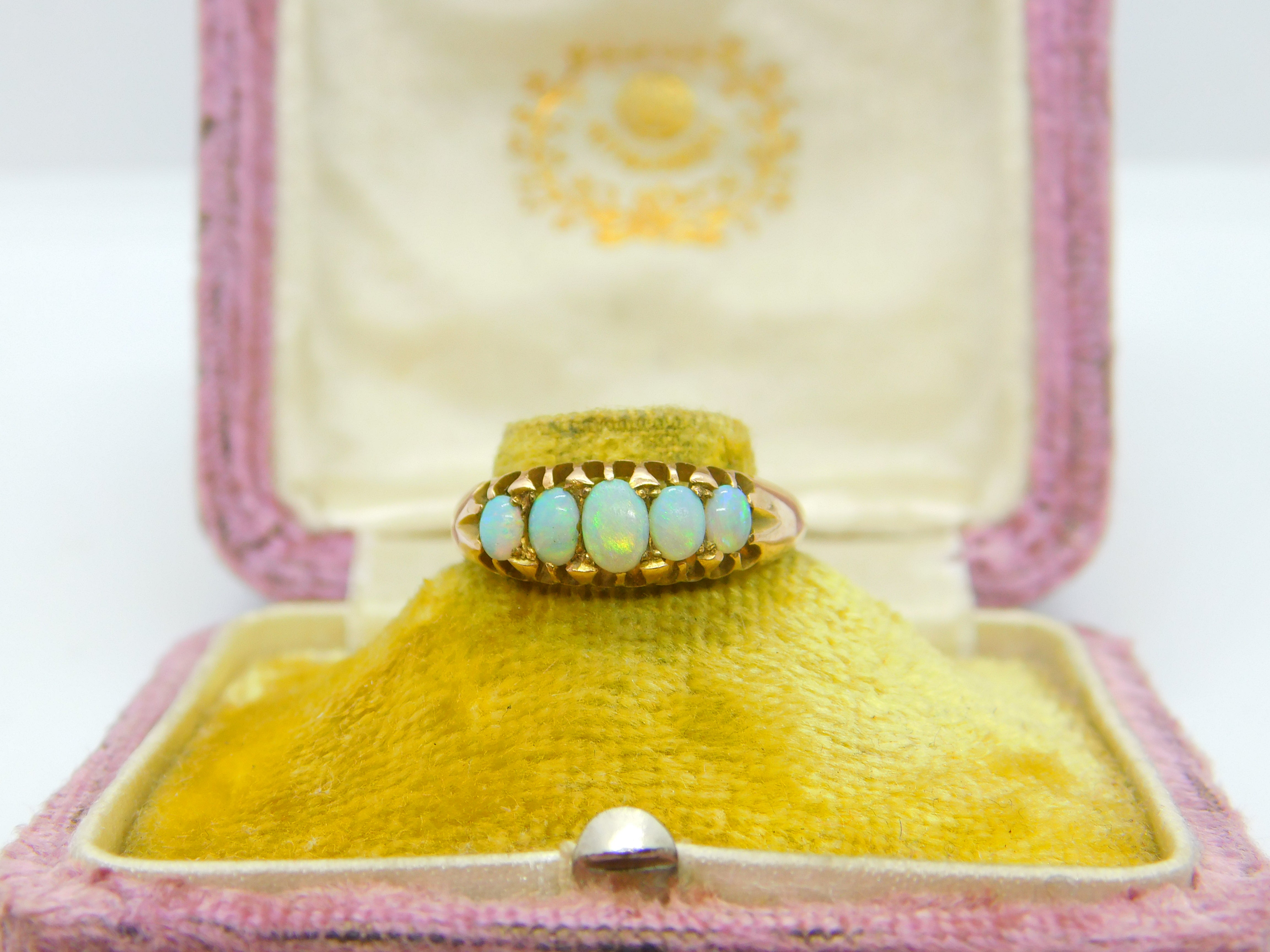 Victorian 9ct Gold & Cabochon Five-Stone Fire Opal Boat Ring c1890 Antique