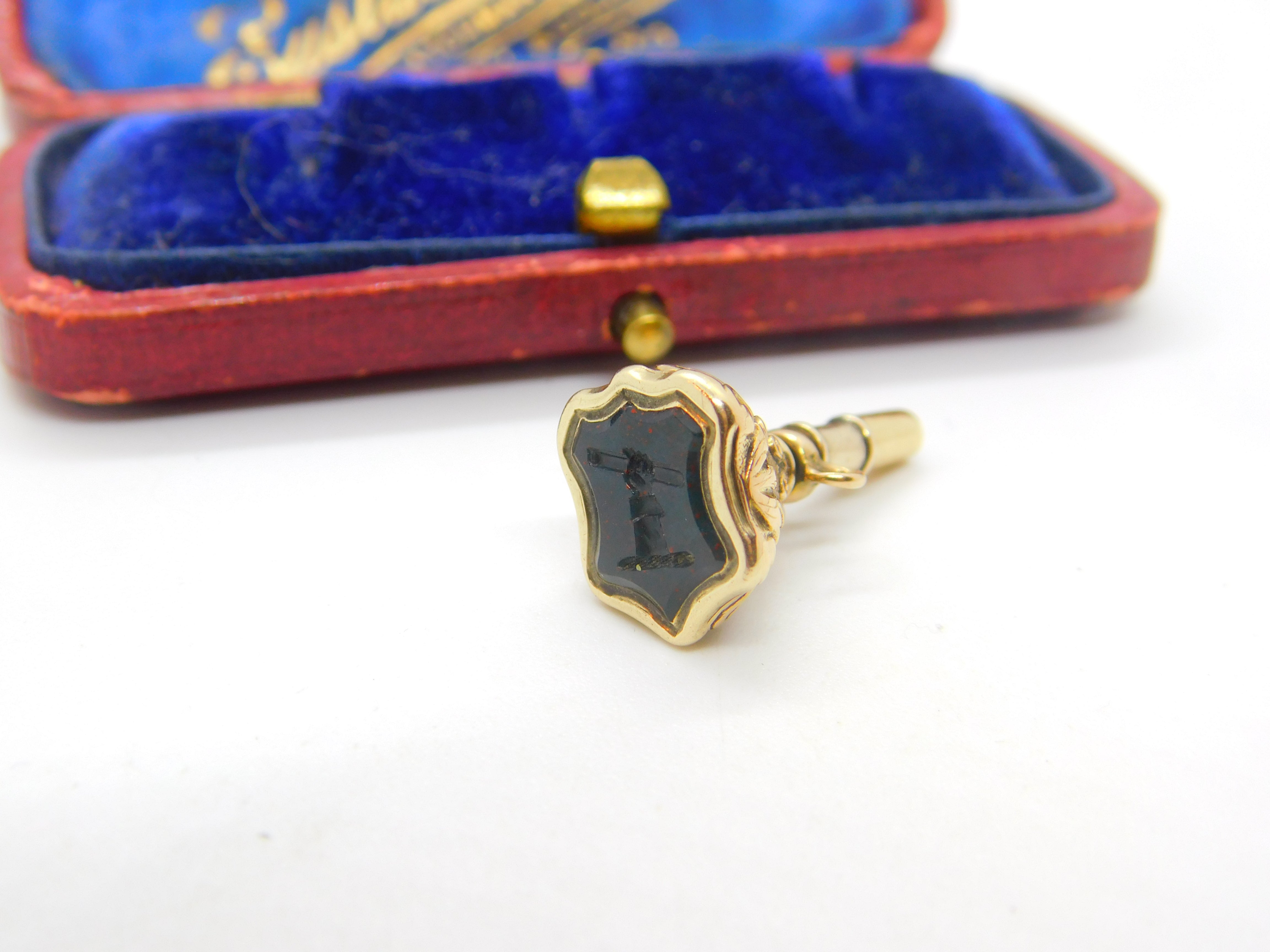 Victorian 9ct Gold Cased Bloodstone & Chalcedony Watch Key Fob Antique c1860