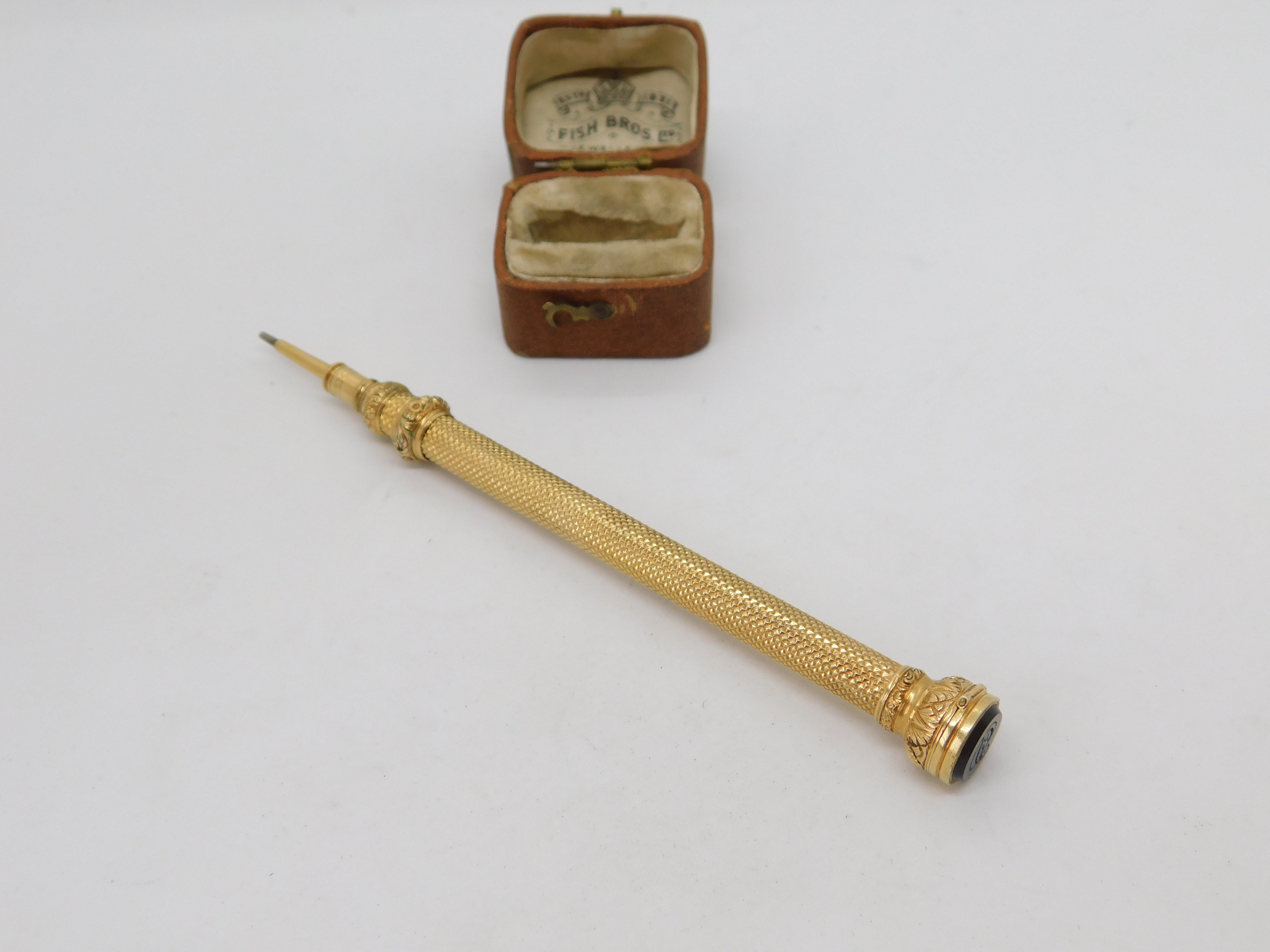 Victorian 9ct Gold Cased R Initial Intaglio Propelling Pencil c1880 Antique