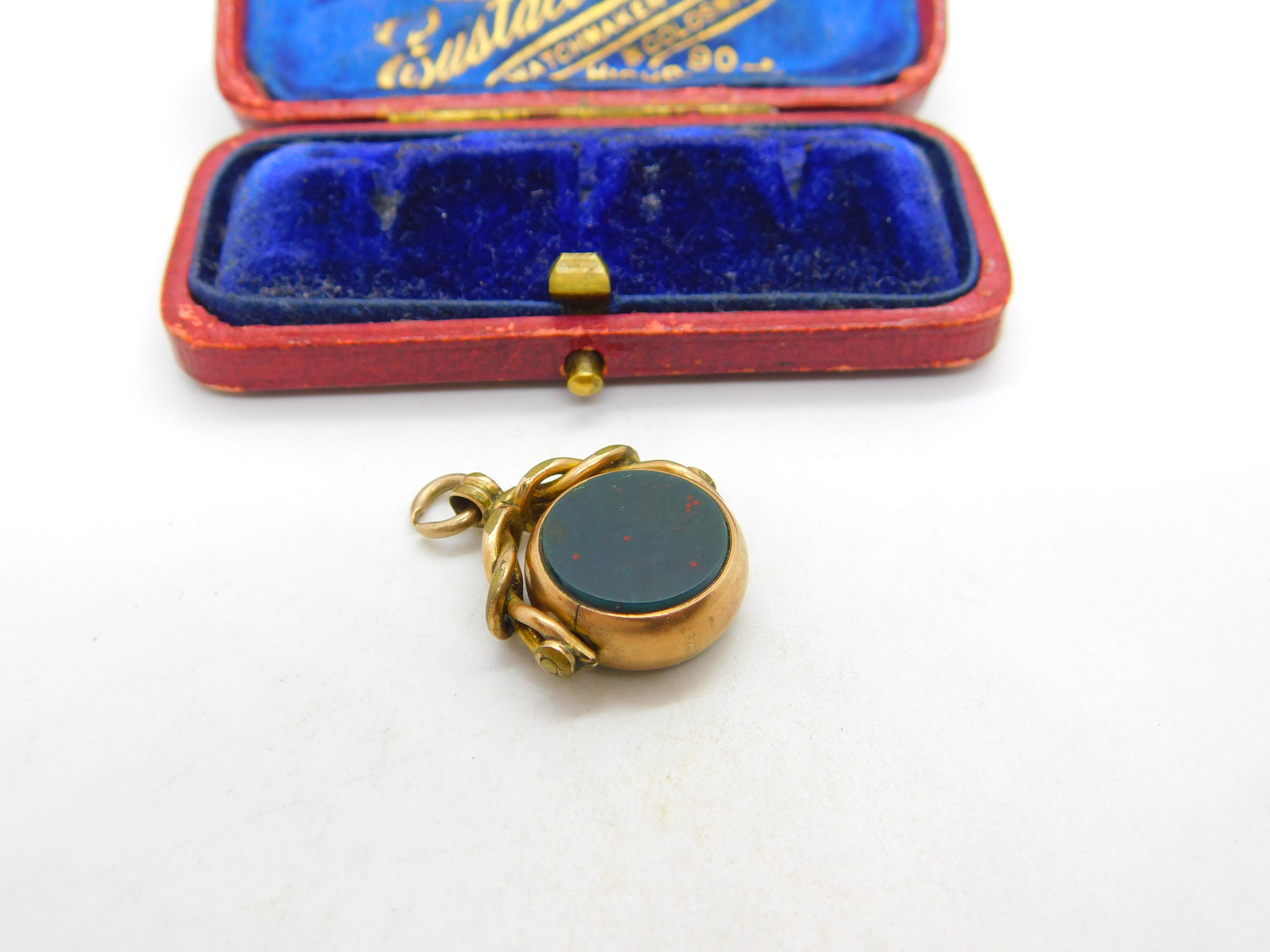 Victorian 9ct Gold Bloodstone & Carnelian Spinner Fob Pendant c1890 Antique