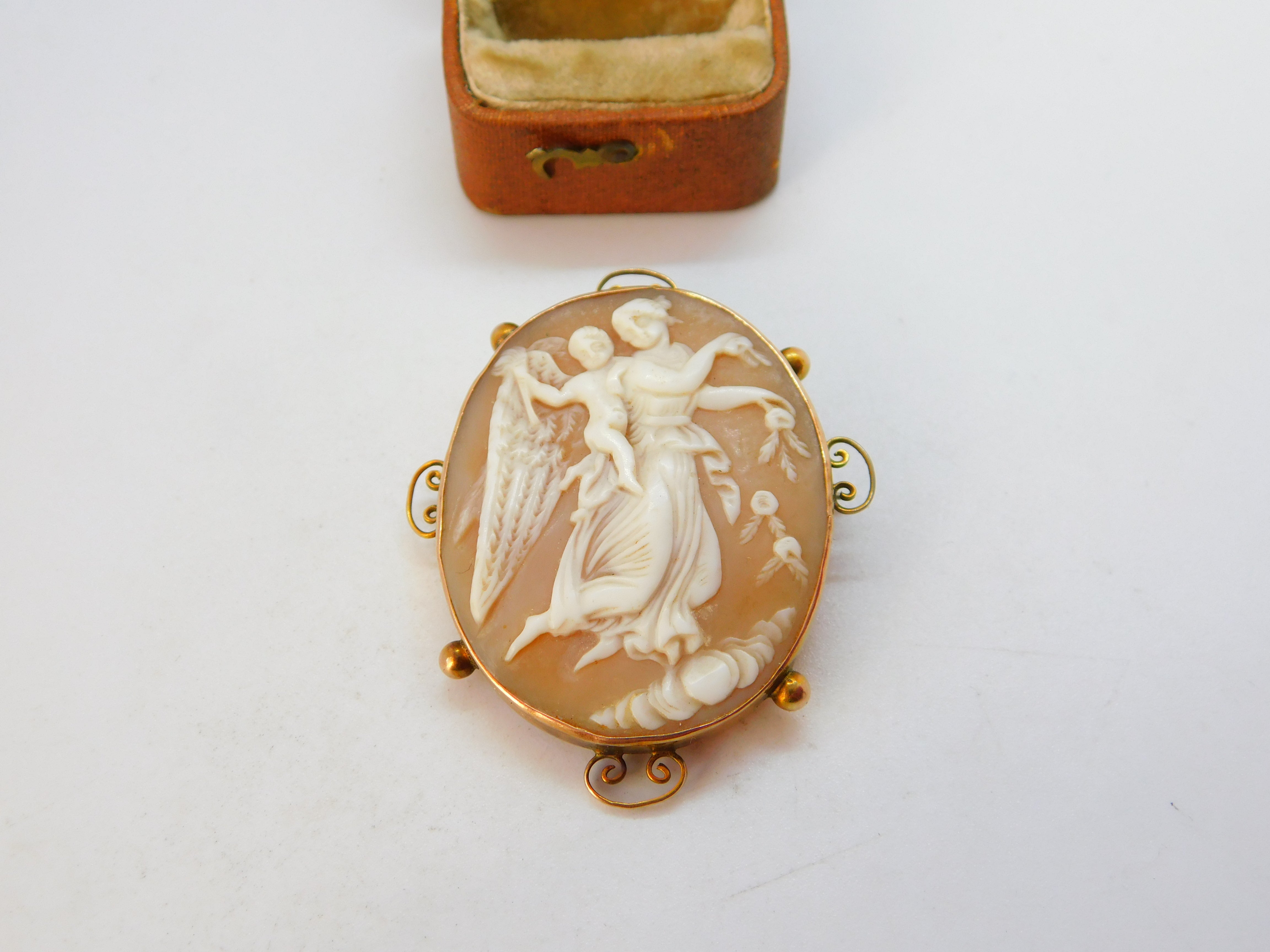 Victorian 9ct Gold Carved Shell Cameo Cupid & Aphrodite Antique c1880