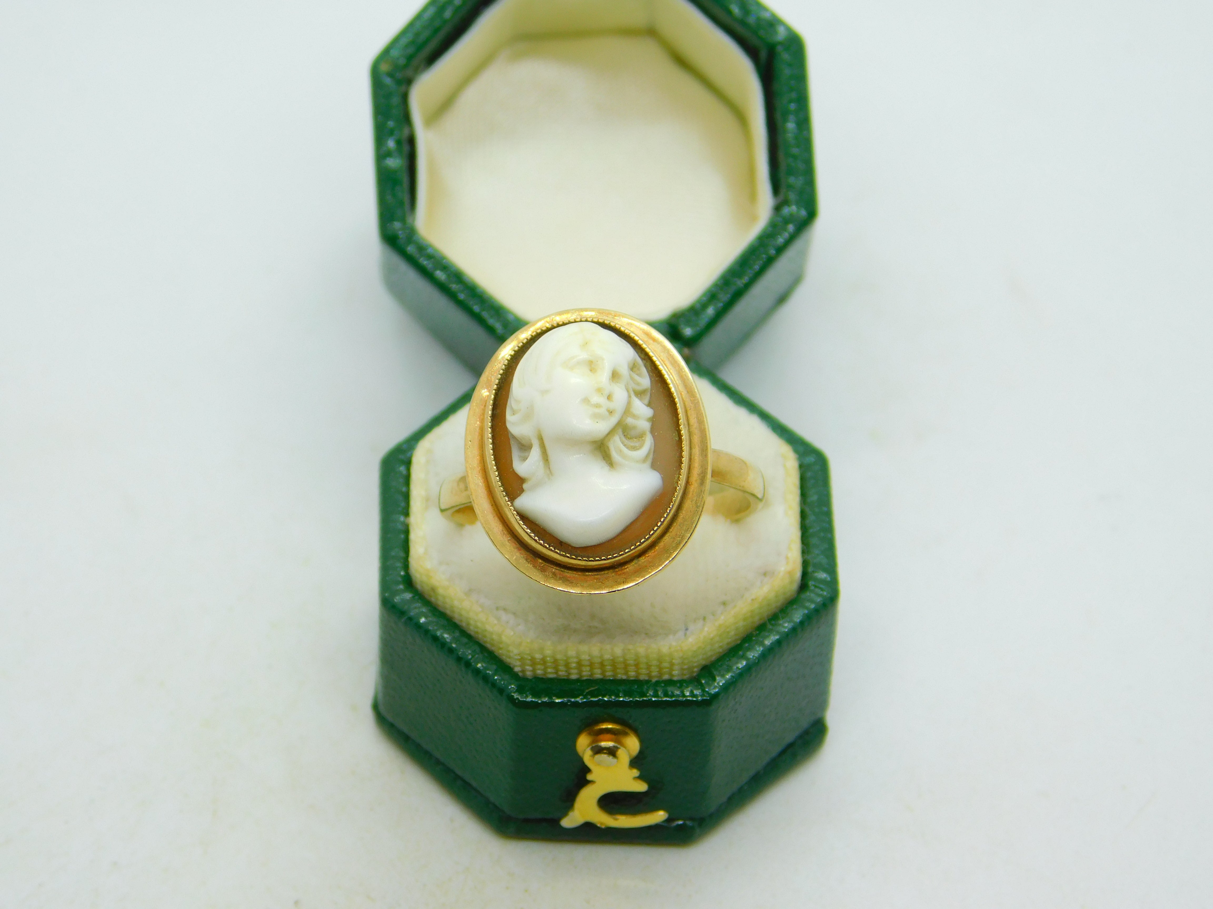 Victorian 9ct Gold Carved High Relief Cameo Signet Ring Antique c1900