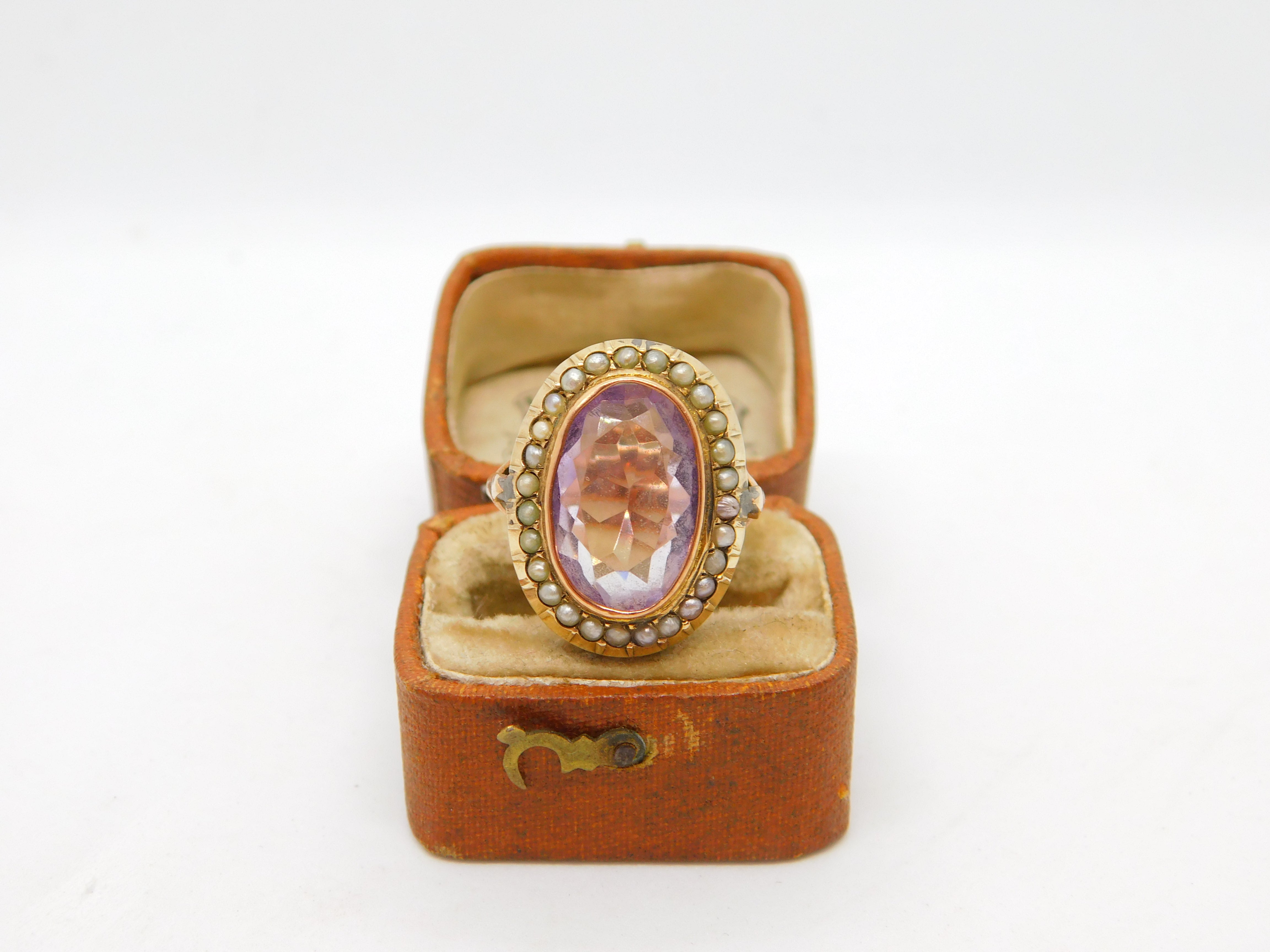 Victorian 9ct Gold, Seed Pearl & Amethyst Dress Ring Antique c1860 Size M UK
