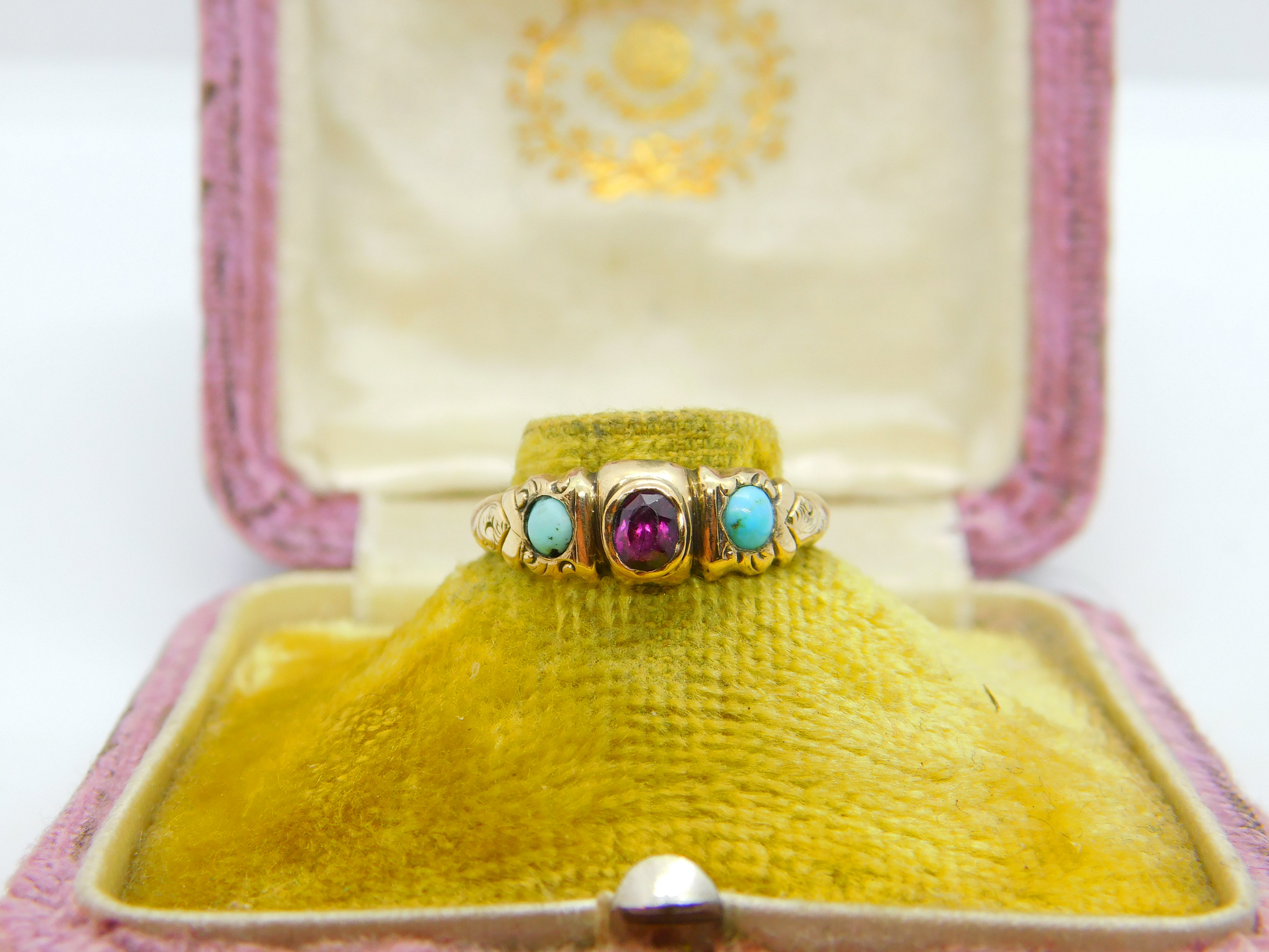 Victorian 9ct Gold, Turquoise & Almandine Garnet Band Ring c1880 Antique