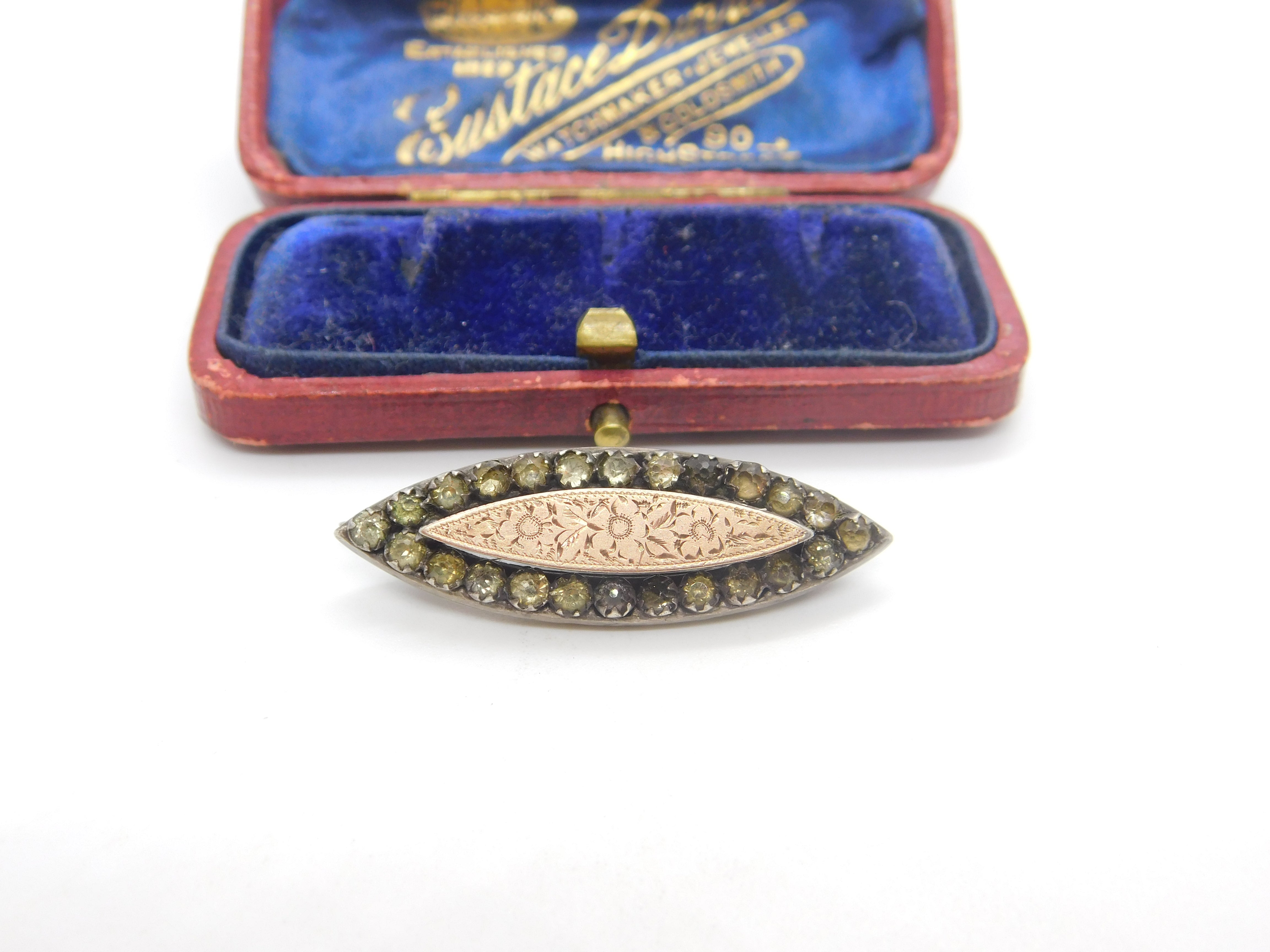 Victorian 9ct Gold, Paste & Sterling Silver Floral Brooch 1896 Chester