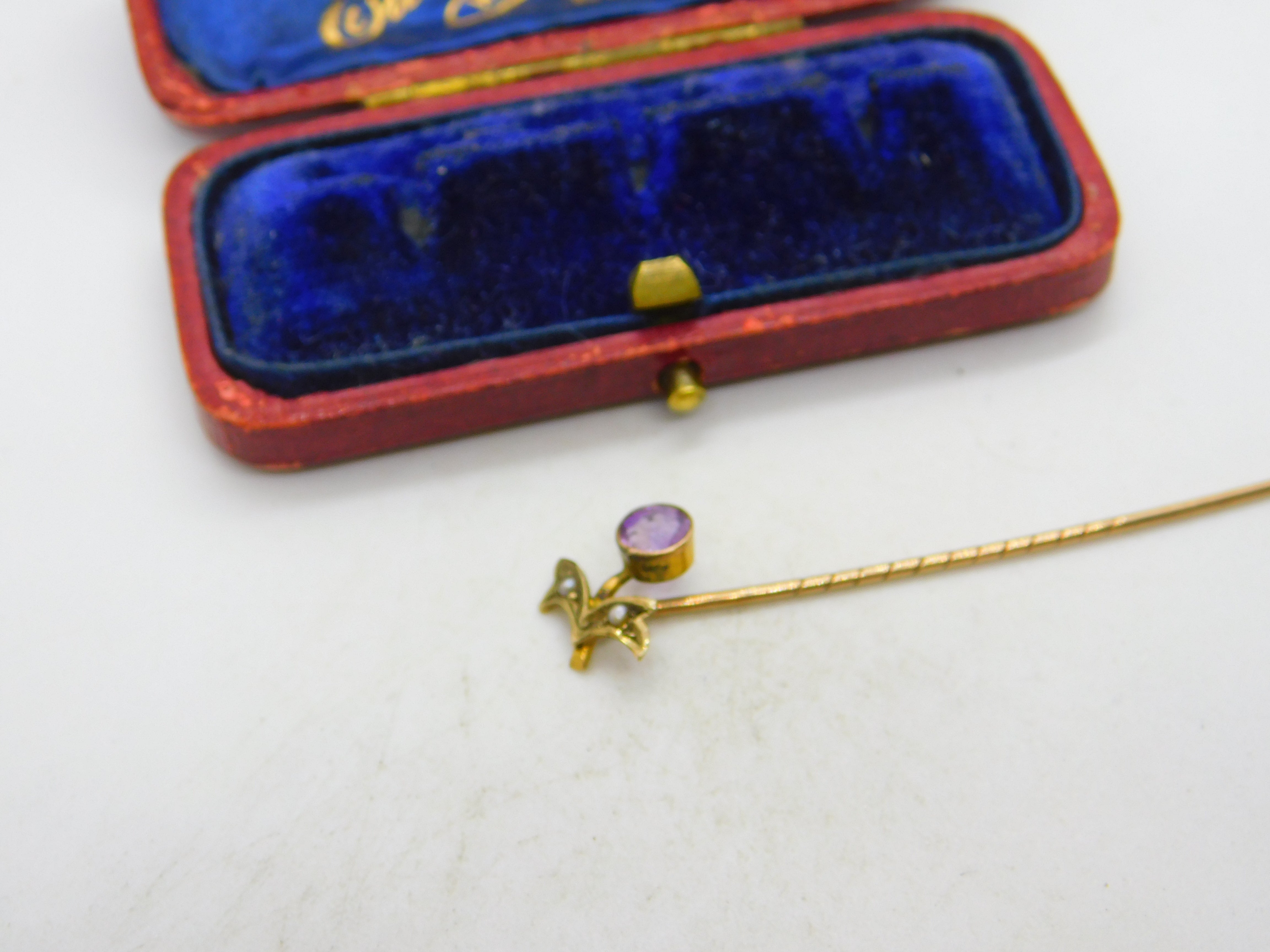 Victorian 9ct Gold, Seed Pearl & Amethyst Floral Wreath Stick Pin c1890 Antique