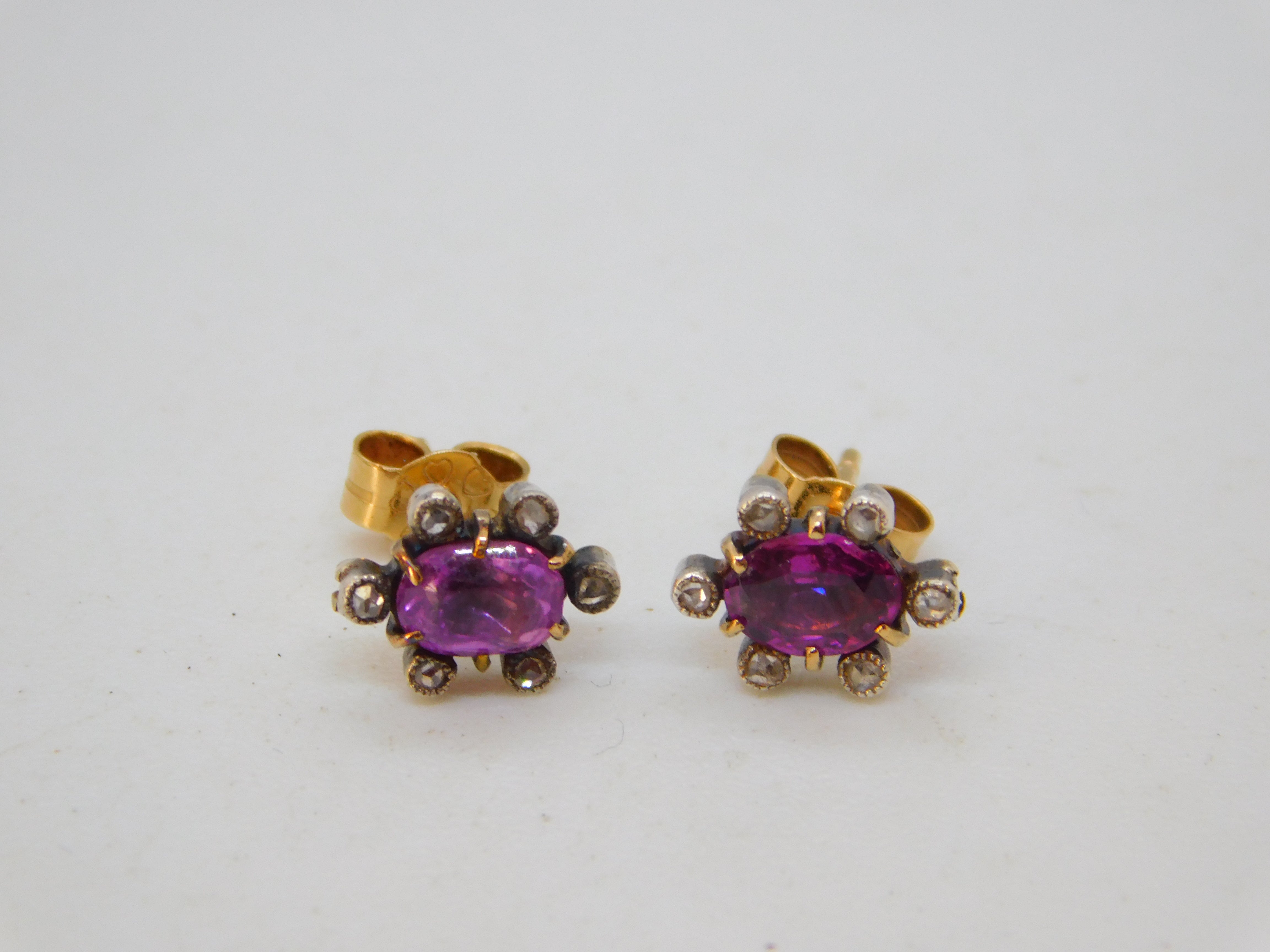 Victorian 9ct Gold, Pink Sapphire, Diamond Floral Cluster Earrings Antique c1890