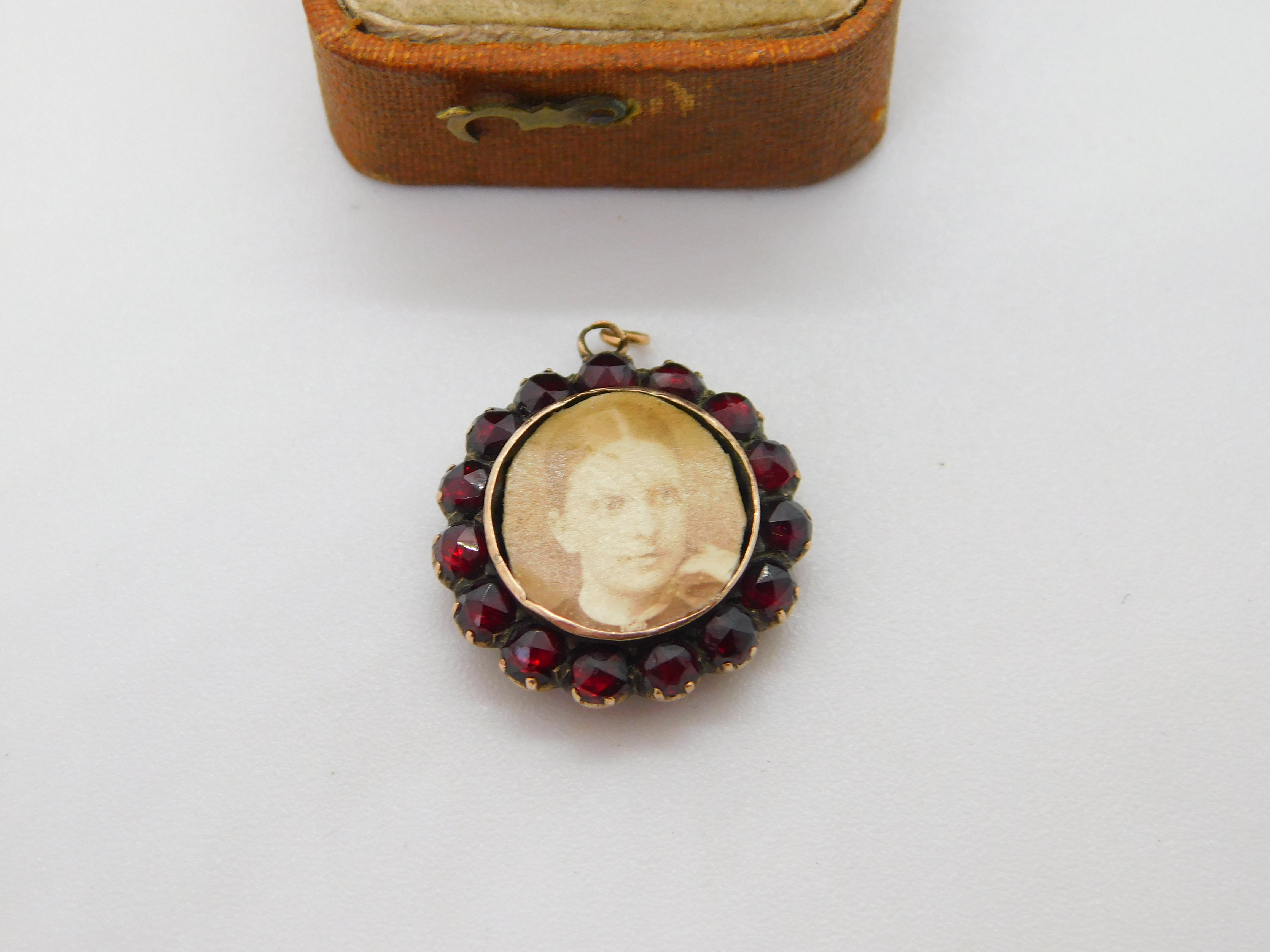 Victorian 9ct Gold, Garnet & Mother of Pearl Locket Pendant Antique c1860