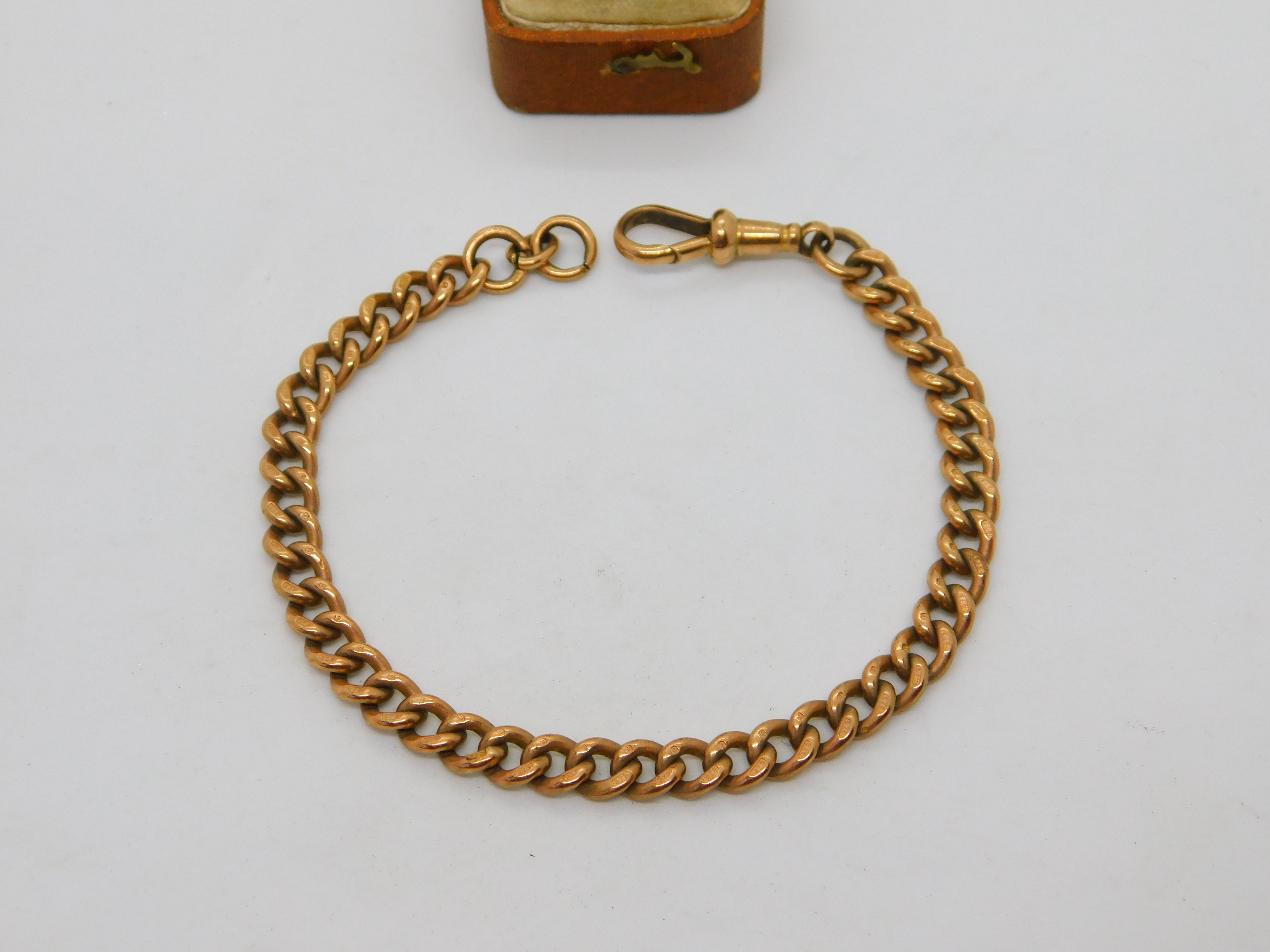 Victorian 9ct Rose Gold Albert Watch Chain Curb Bracelet c1900 Antique 8.2"