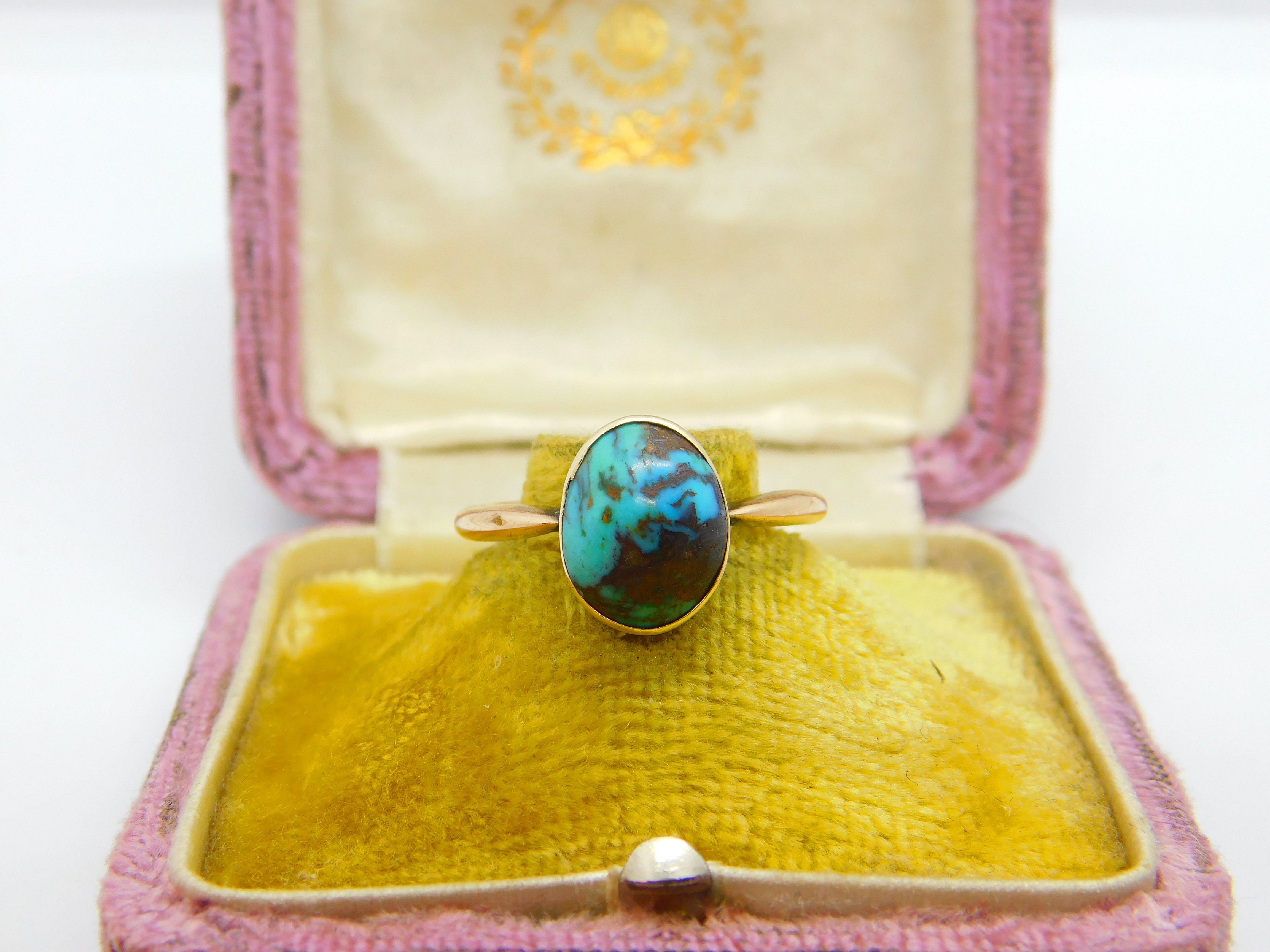 Victorian 9ct Rose Gold & Cabochon Cut Turquoise Dress Ring Antique c1890