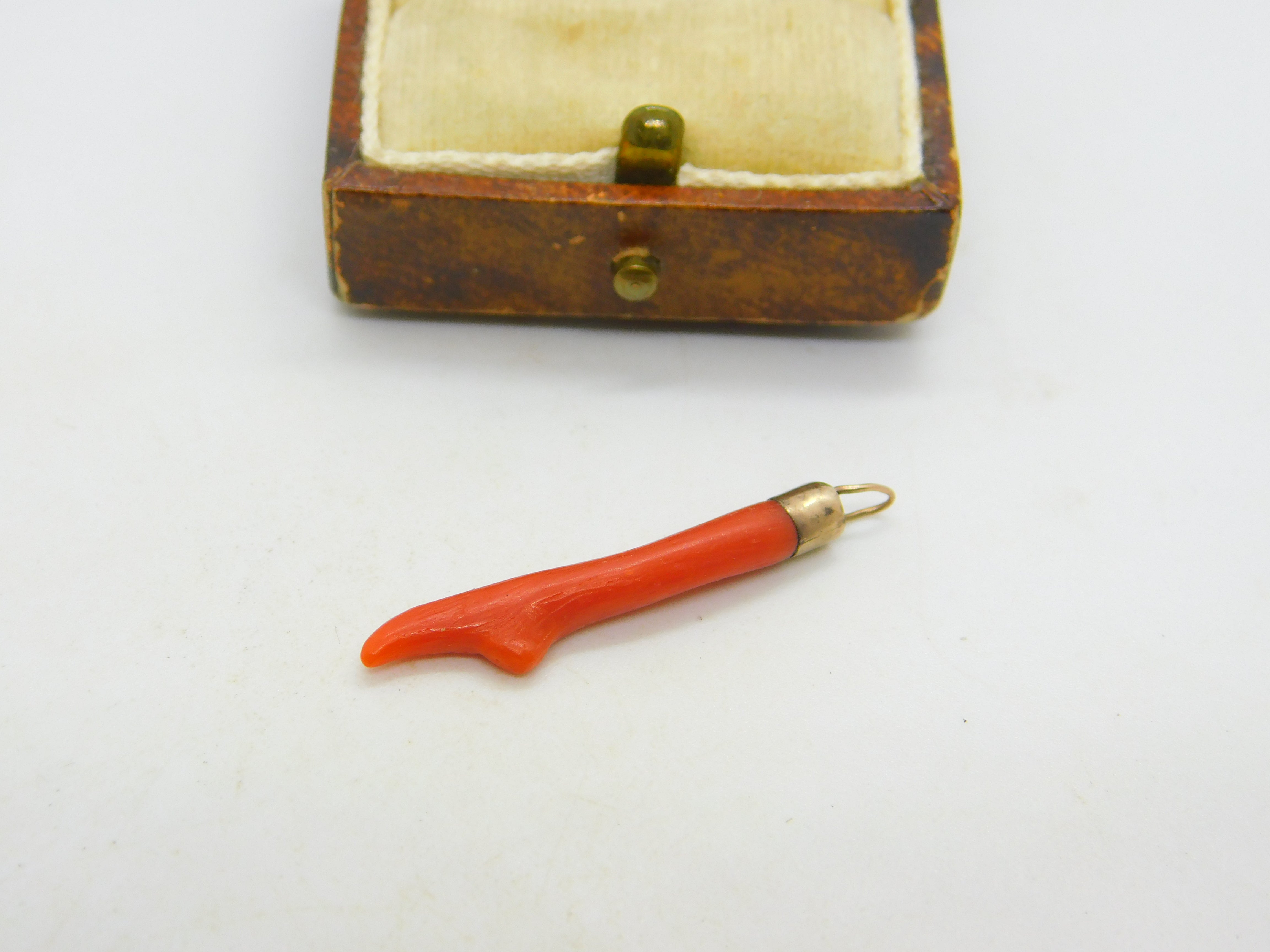 Victorian 9ct Rose Gold & Red Coral Specimen Drop Pendant Antique c1880