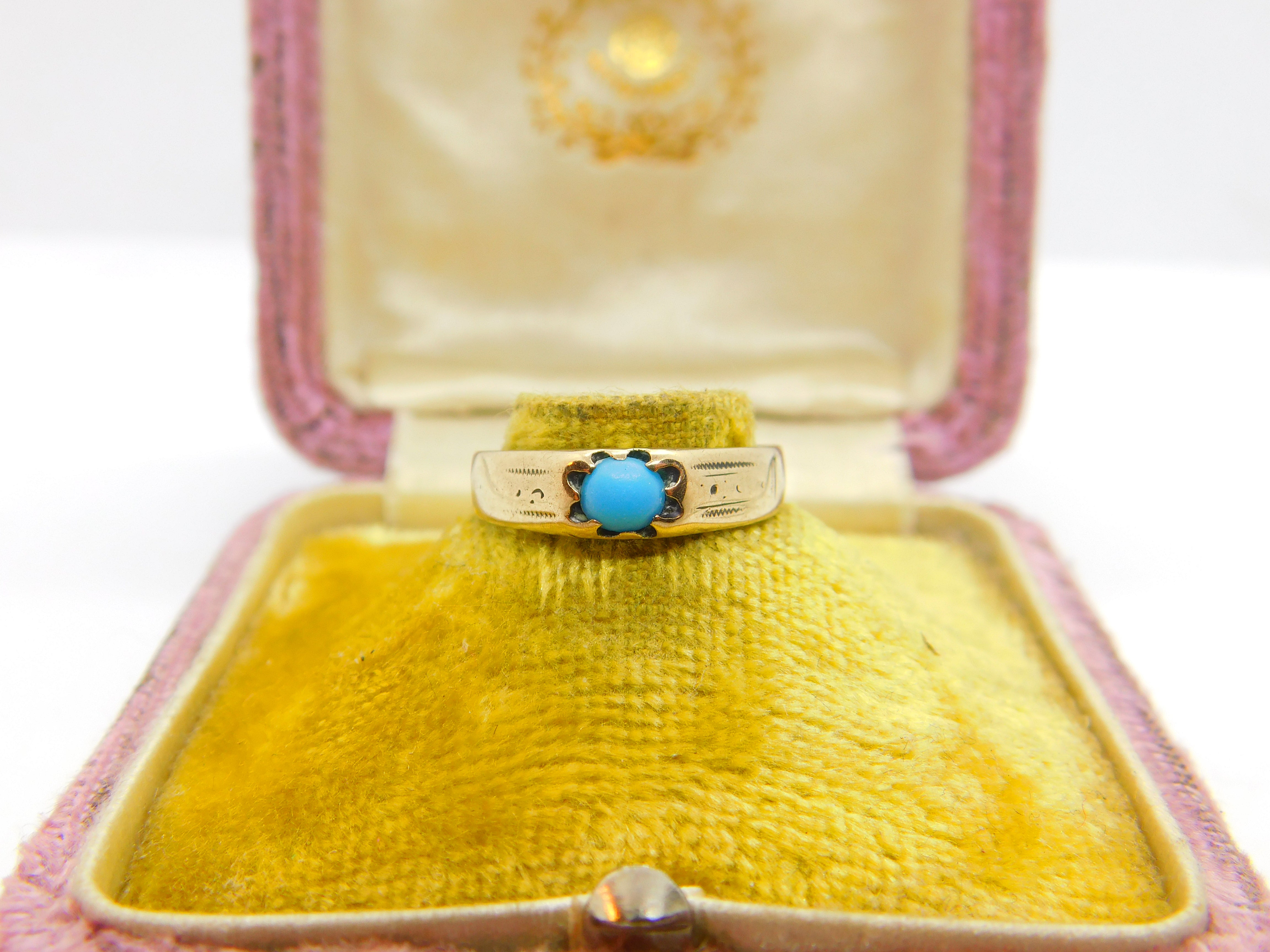 Victorian 9ct Rose Gold & Turquoise Set Band Ring Antique c1880