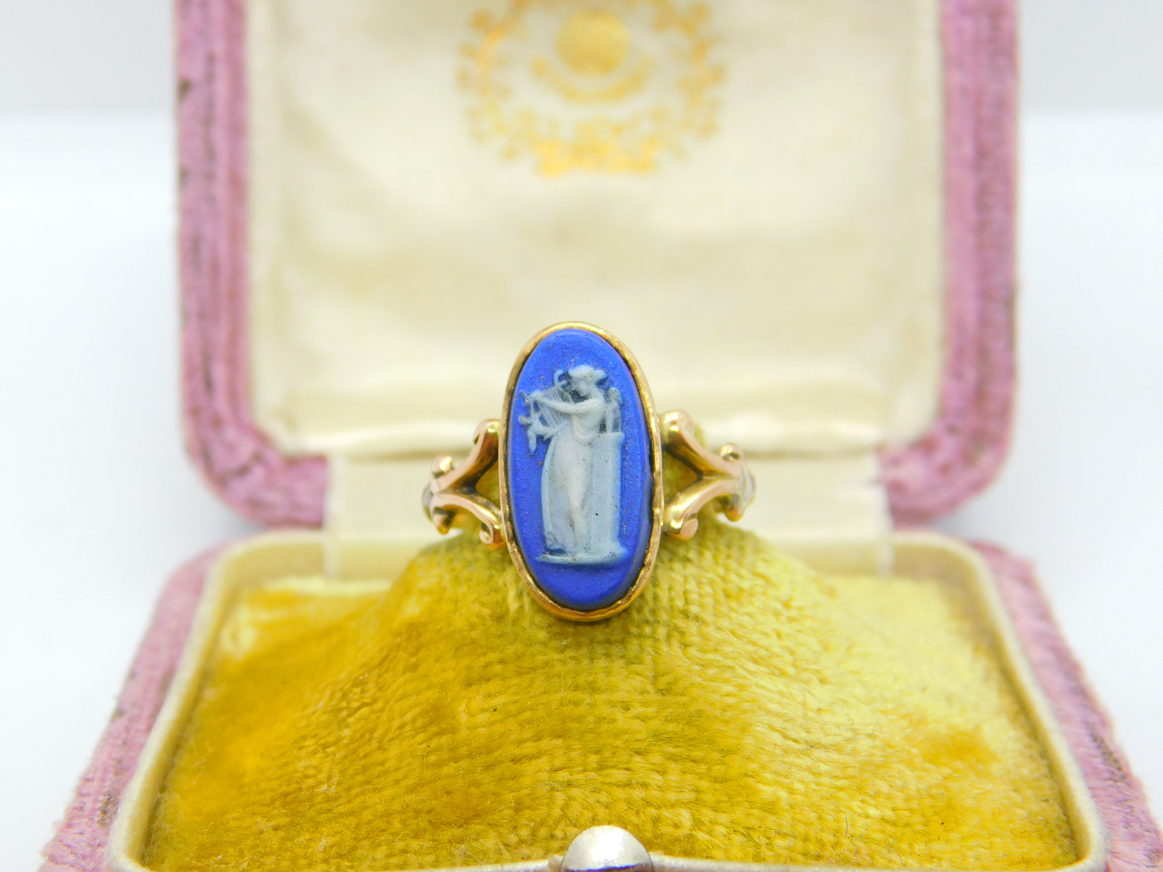 Victorian 9ct Rose Gold & Wedgwood Jasperware Classical Ring c1890 Antique
