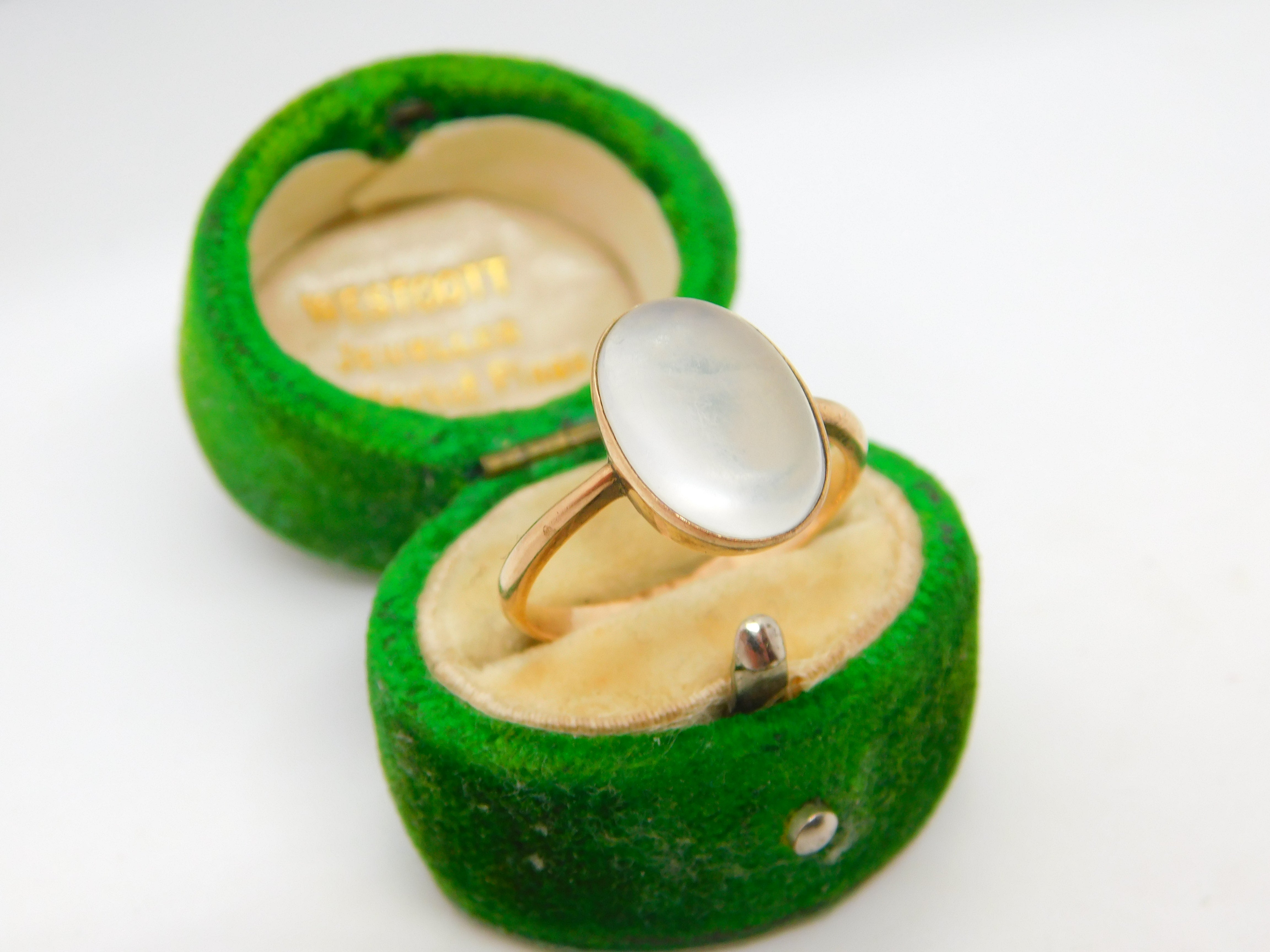 Victorian 9ct Rose Gold & Cabochon Moonstone Dress Ring Antique c1880