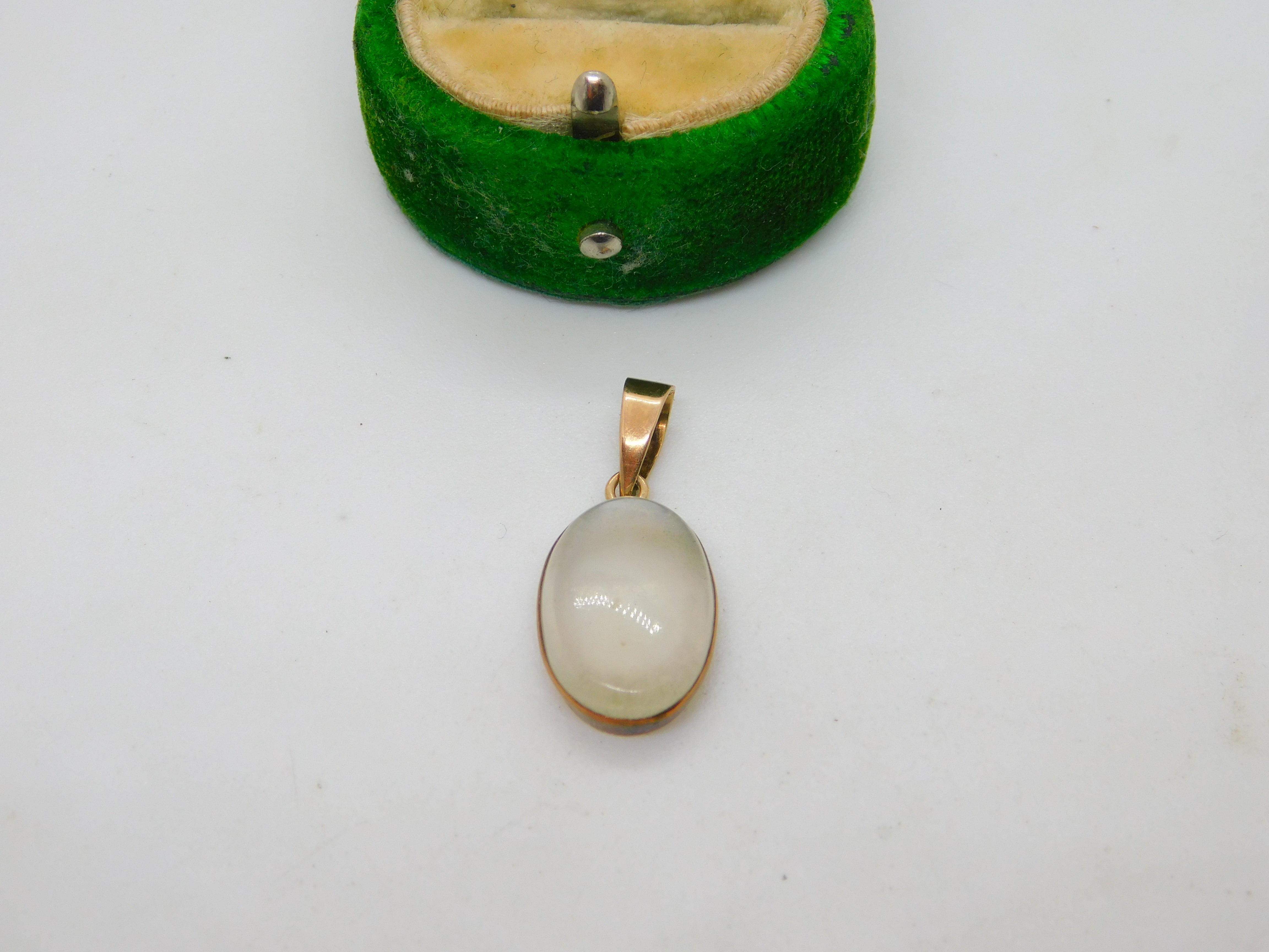 Victorian 9ct Rose Gold & Cabochon Moonstone Drop Pendant Antique c1880