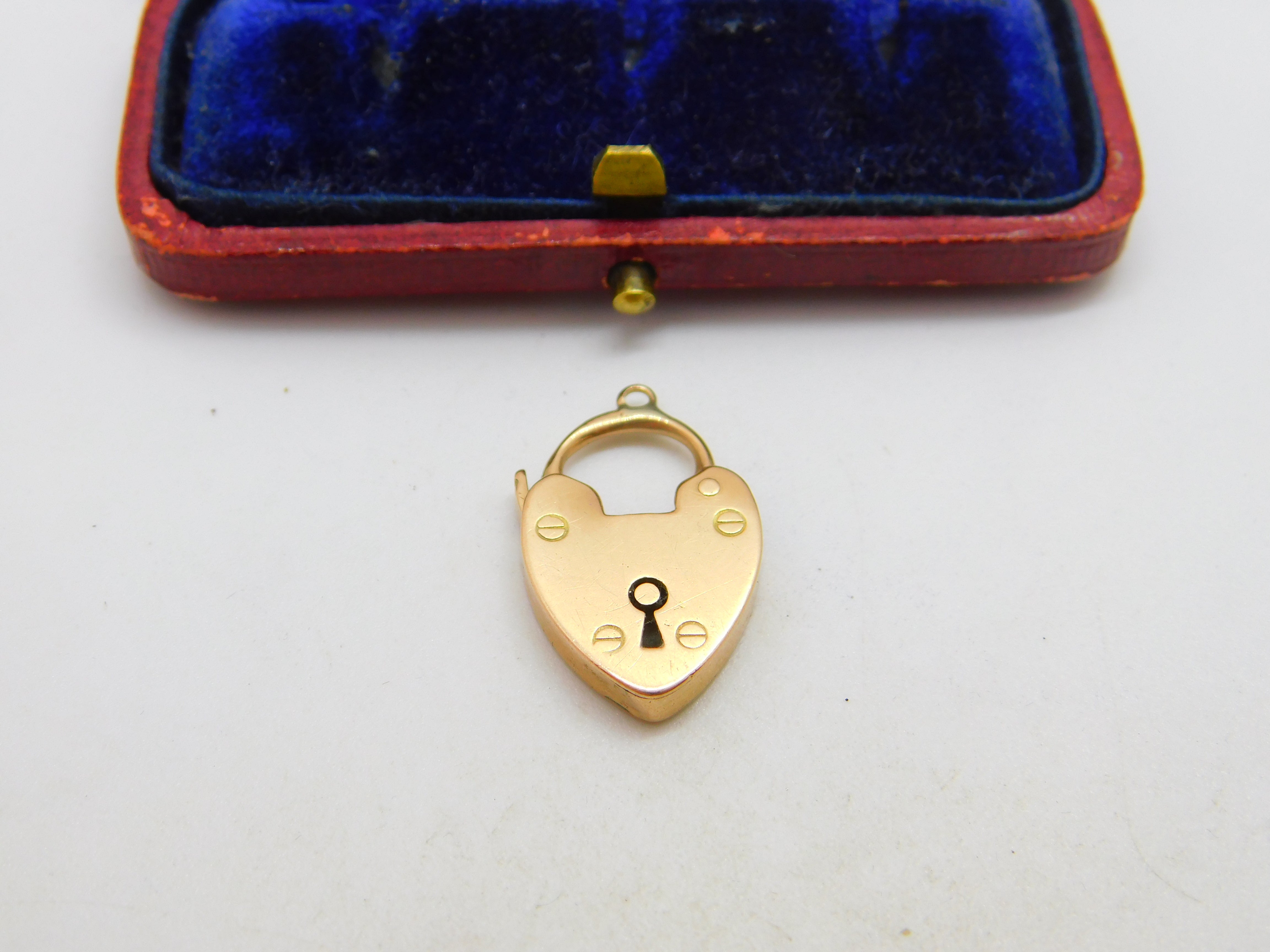 Victorian 9ct Rose Gold Heart Lock Charm Bracelet Clasp 1900 Birmingham
