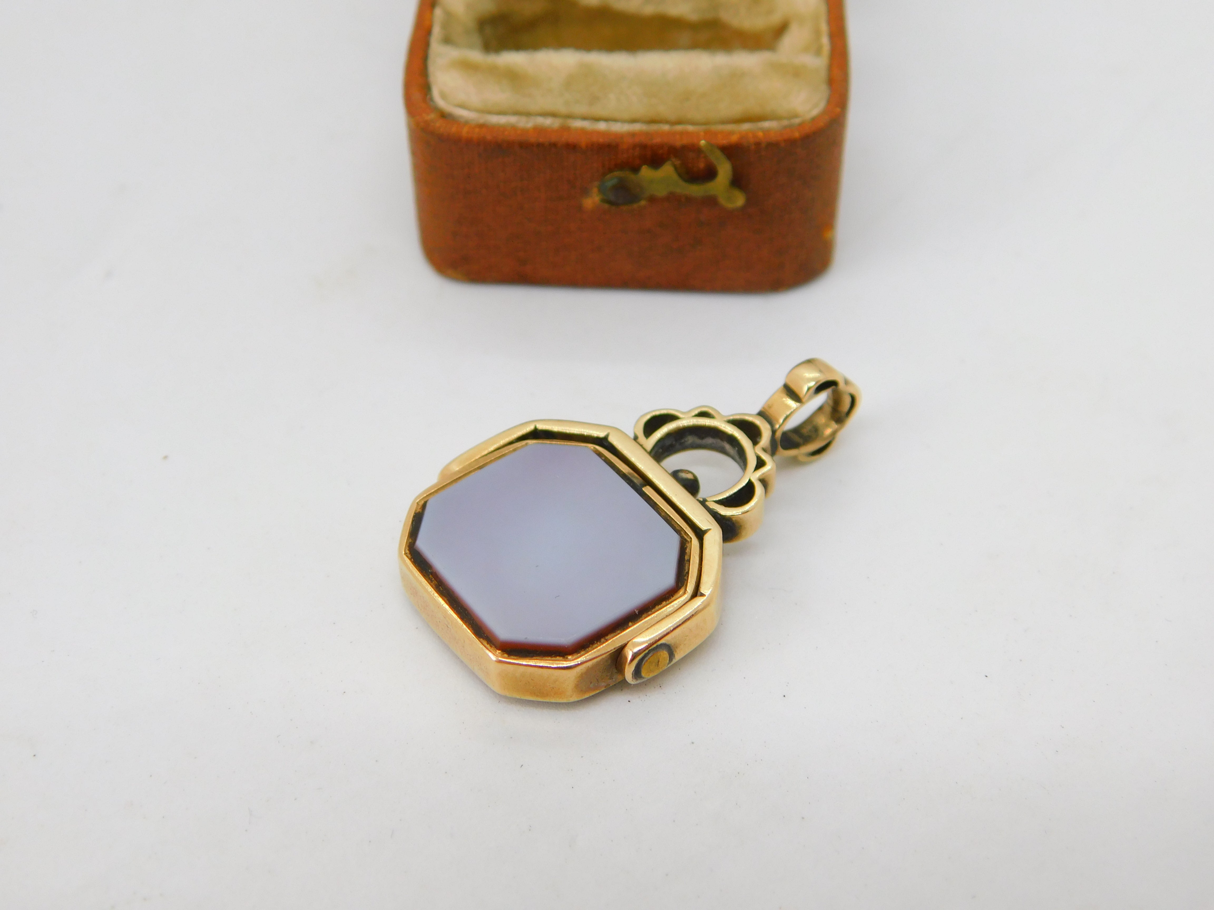 Victorian 9ct Rose Gold, Carnelian & Bloodstone Spinner Fob Pendant Antique c1890