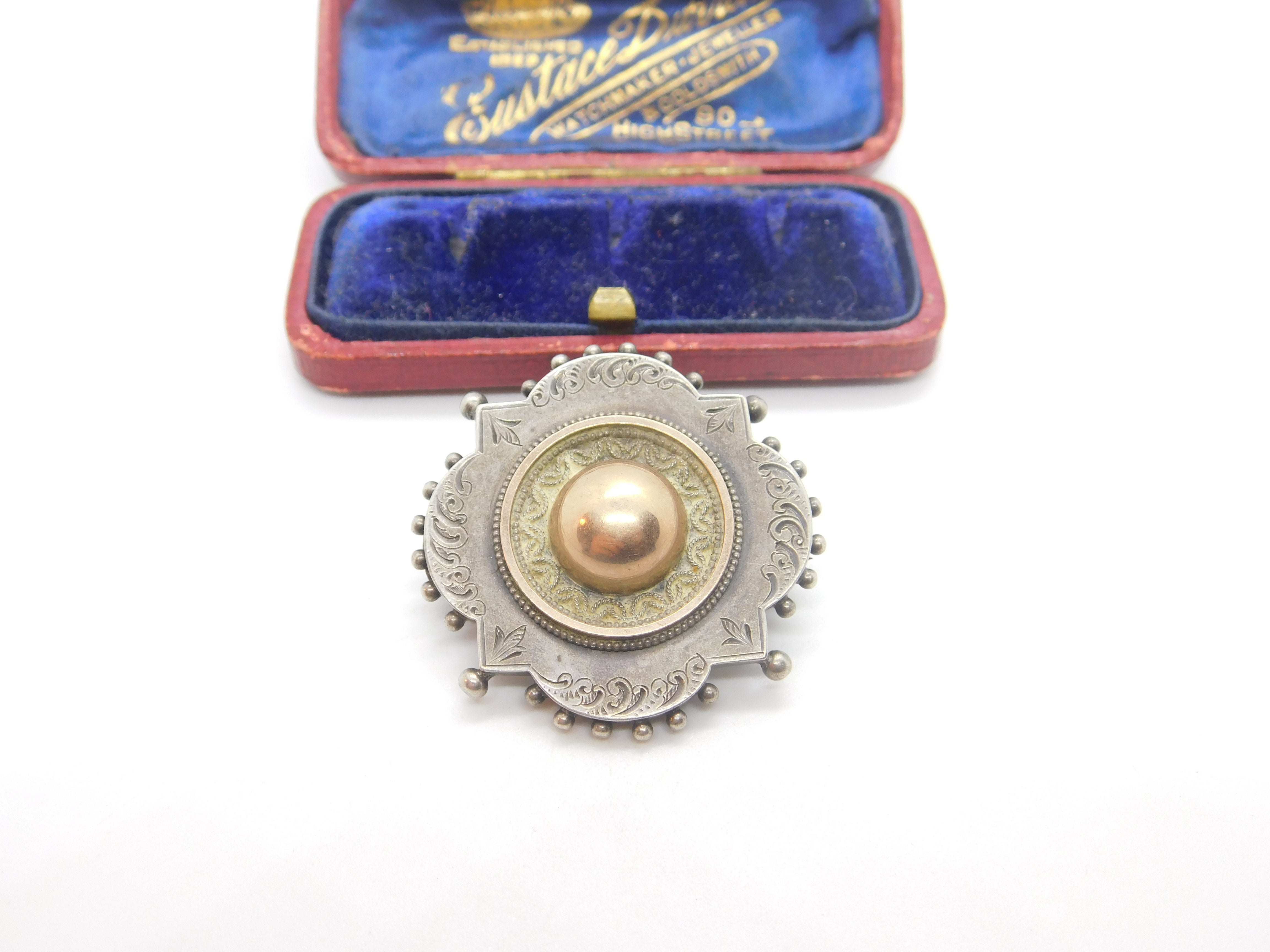 Victorian 9ct Rose Gold Sterling Silver Button Brooch Antique c1860