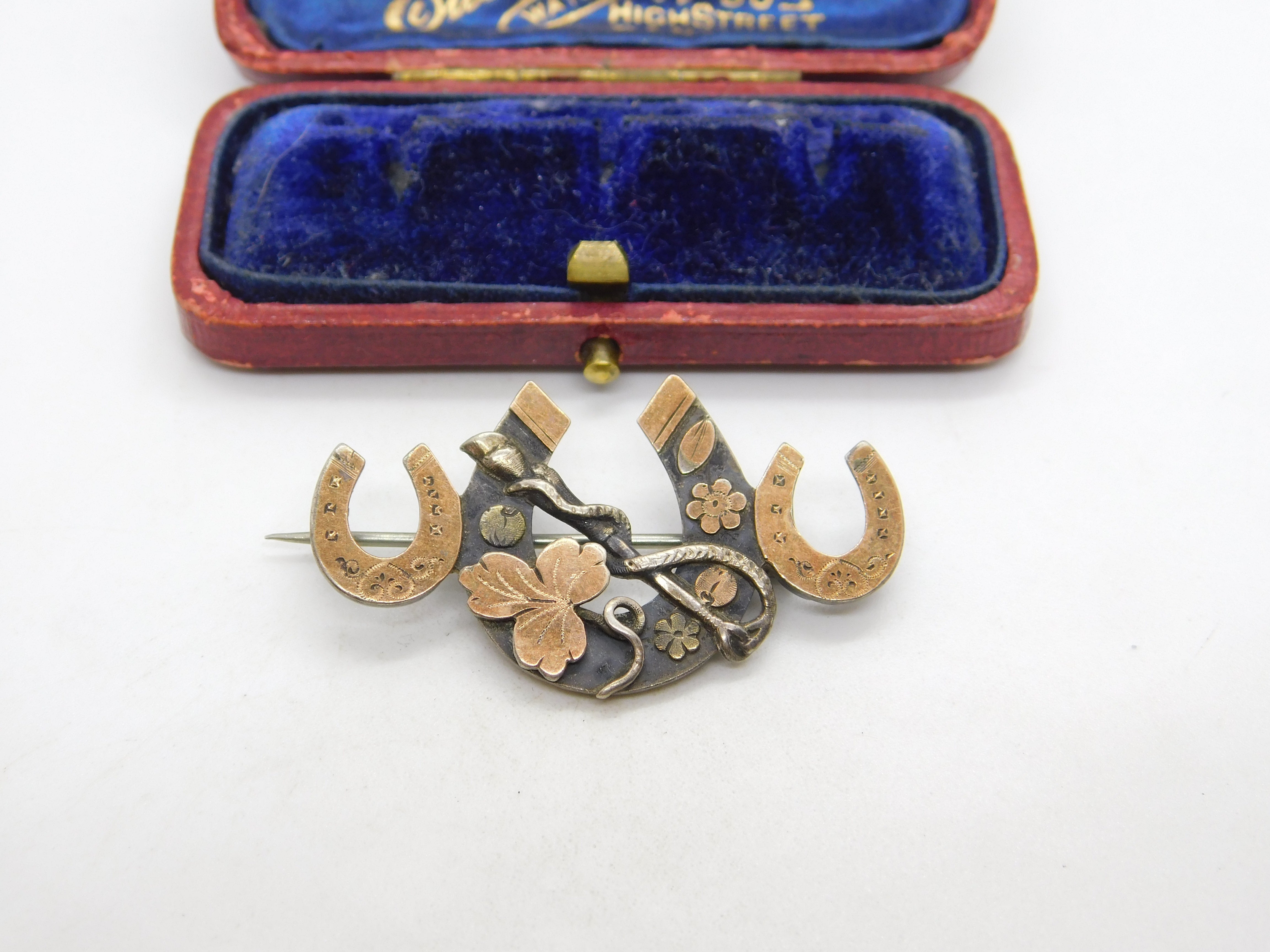 Victorian 9ct Rose Gold Horseshoe Sweetheart Brooch 1894 Birmingham Antique
