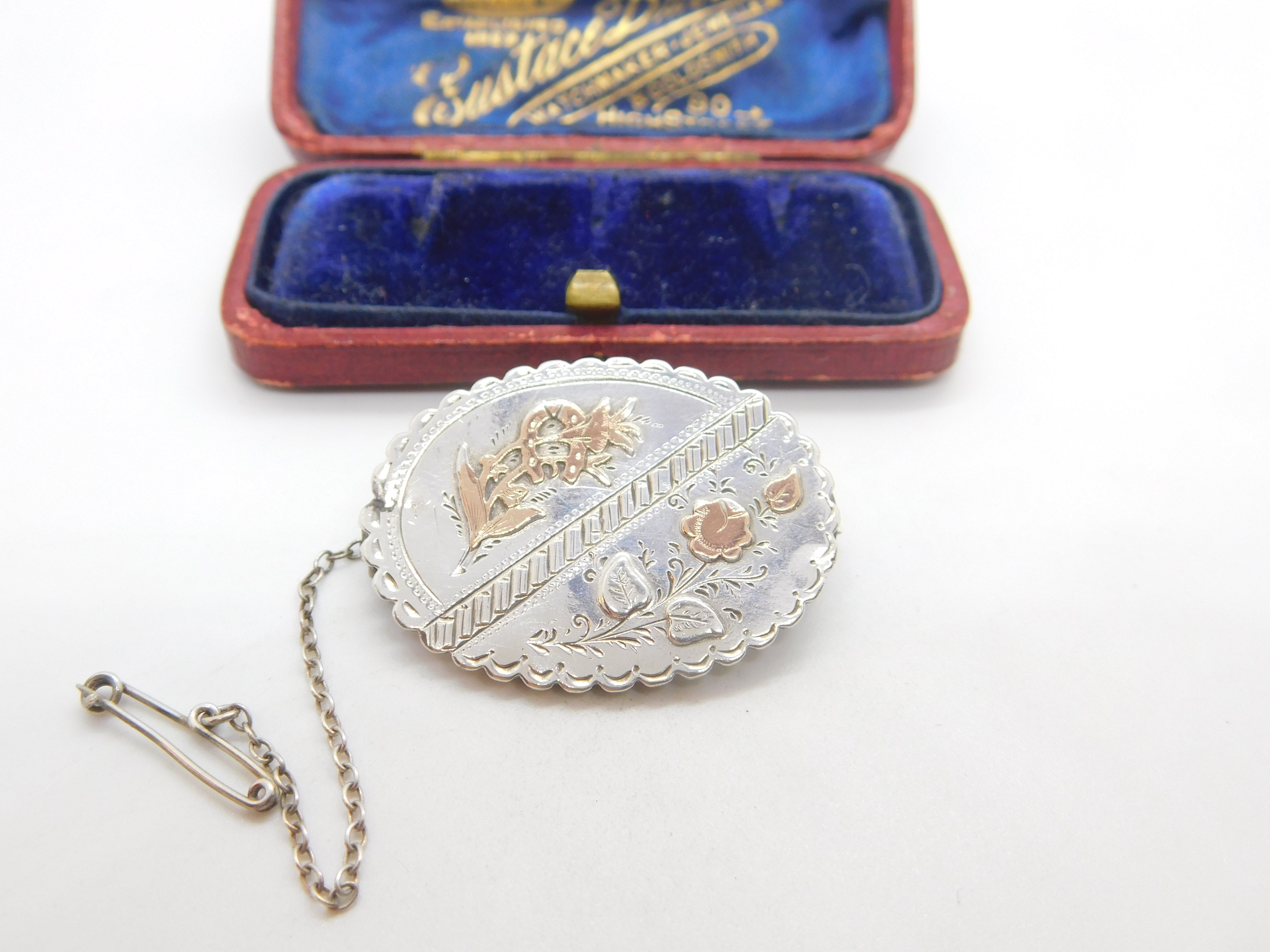 Victorian 9ct Rose Gold on Sterling Silver Floral Sweetheart Brooch 1888 Antique