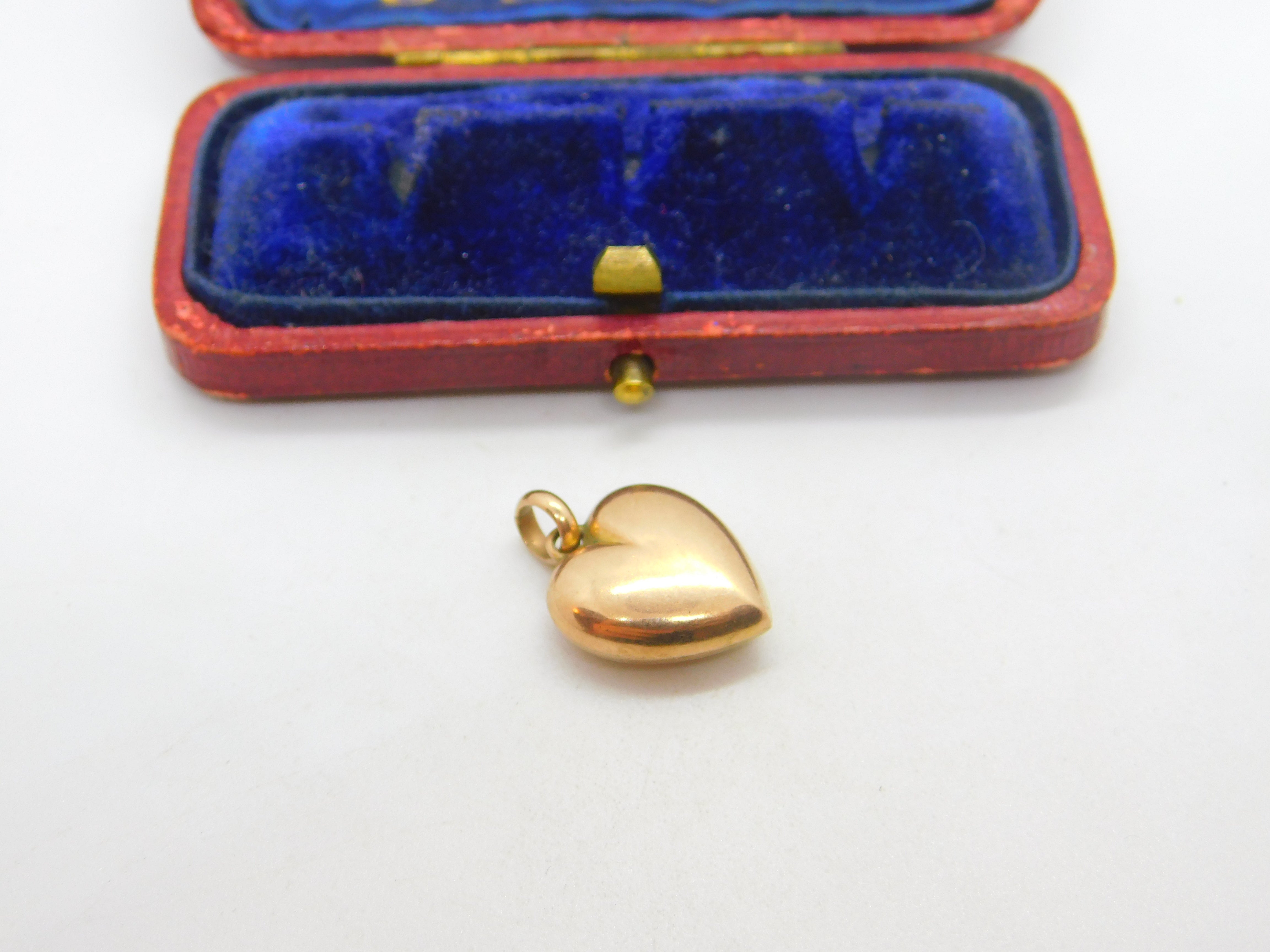Victorian 9ct Rose Gold Puffy Heart Charm or Pendant Antique c1900
