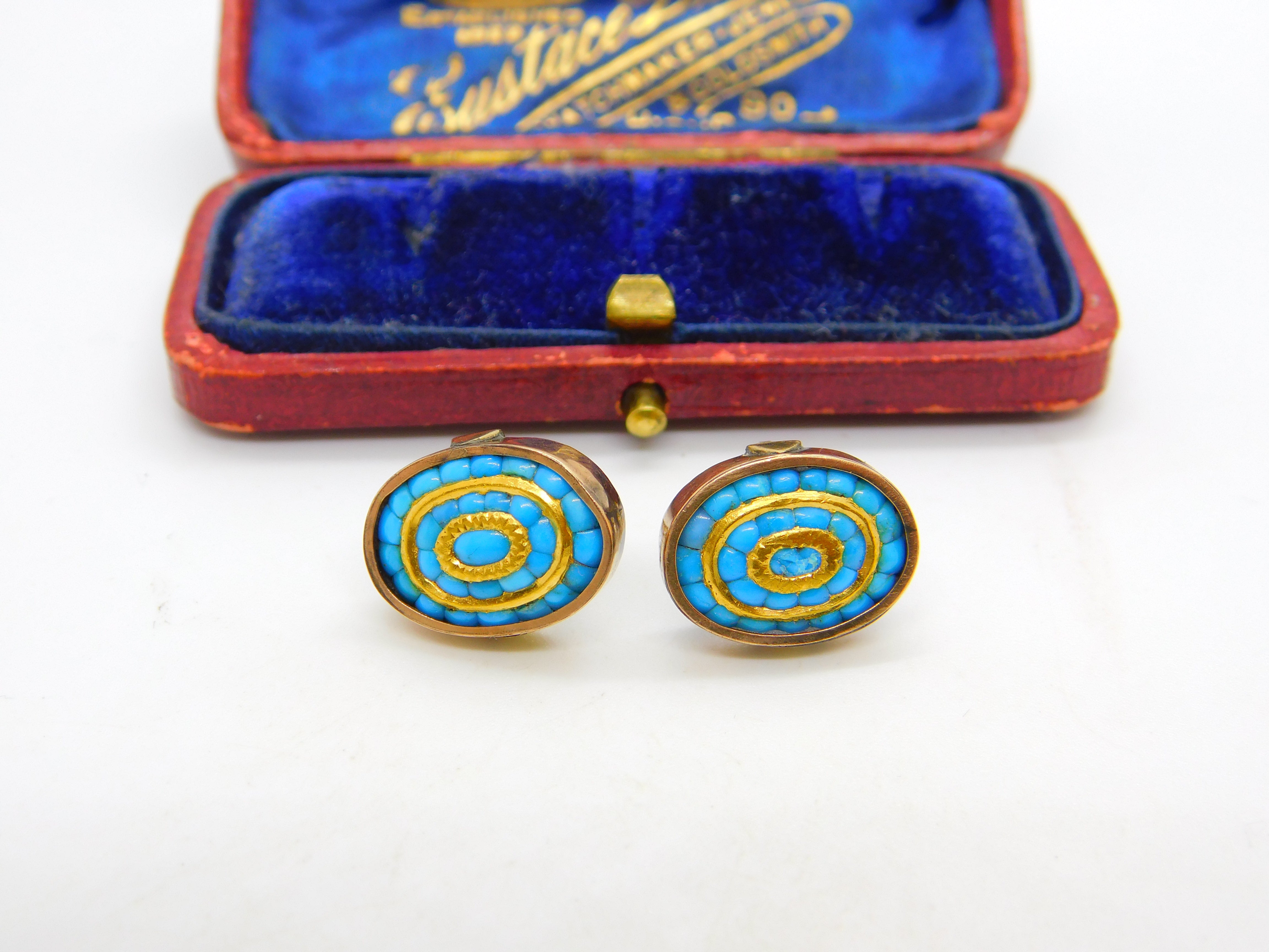 Victorian 9ct Rose Gold, 24ct Gold & Turquoise Stud Earrings c1880 Antique