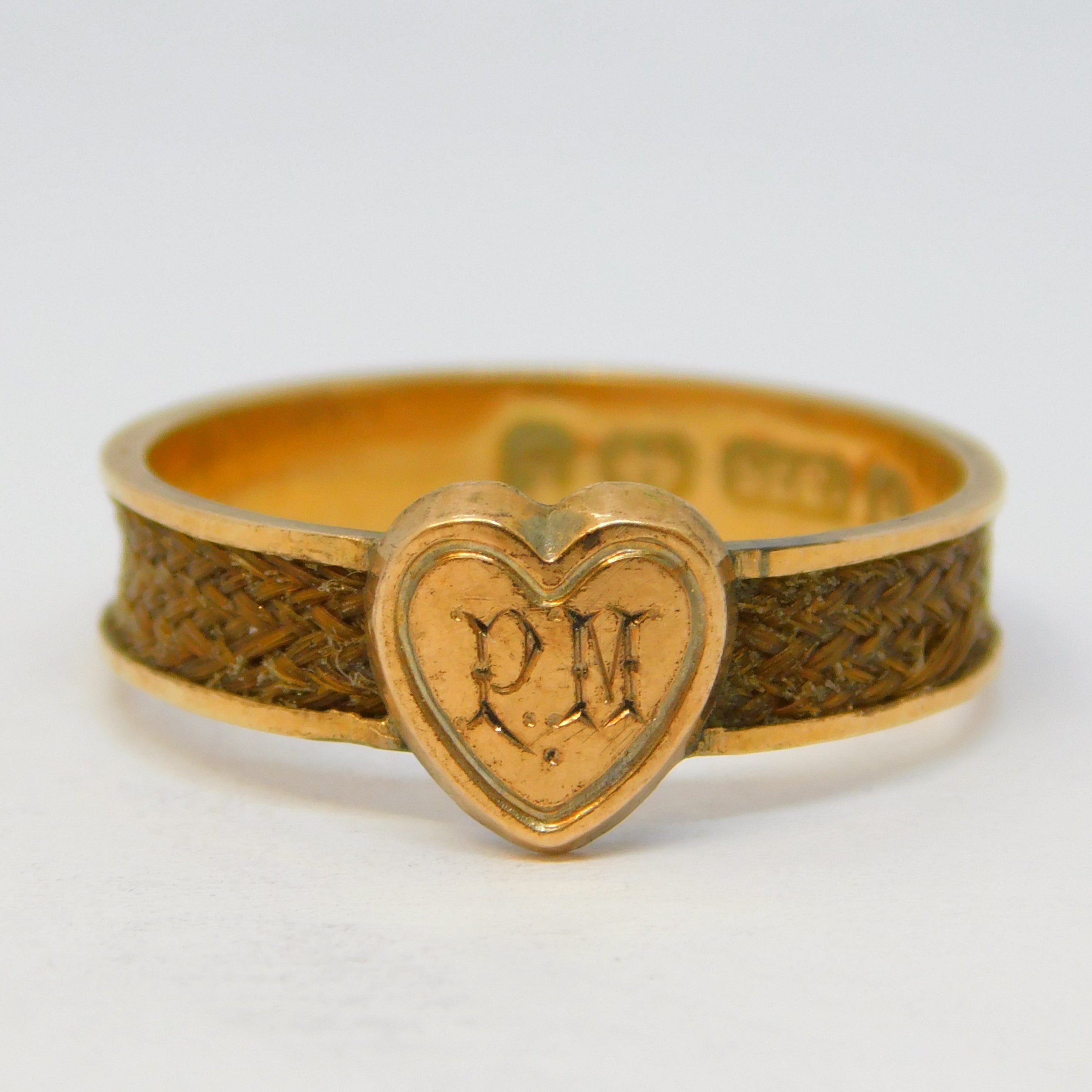 Victorian 9ct Rose Gold Hair Set Mourning Ring Antique 1876 Birmingham