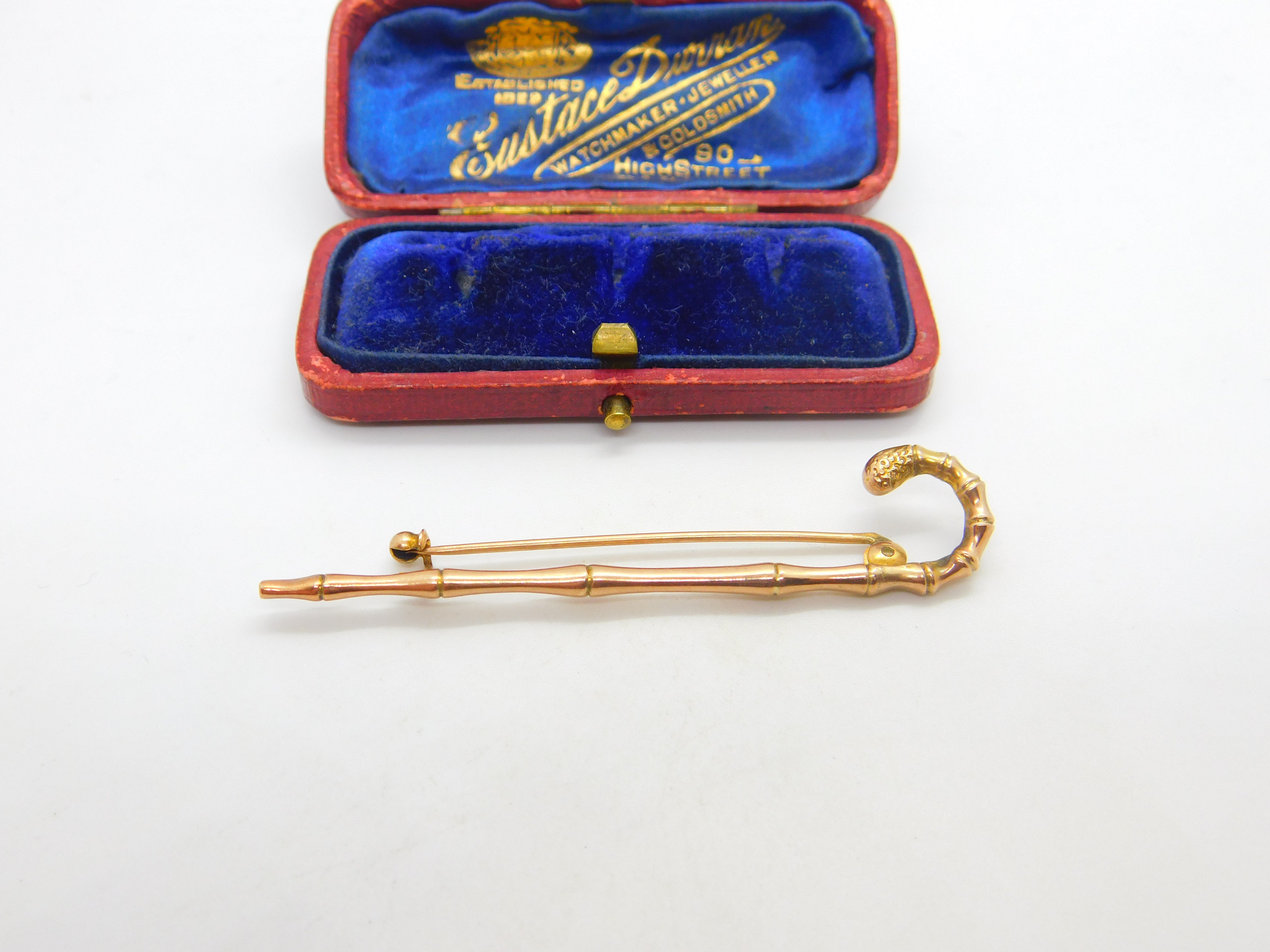 Victorian 9ct Rose Gold Walking Stick Brooch Antique 1896 Birmingham