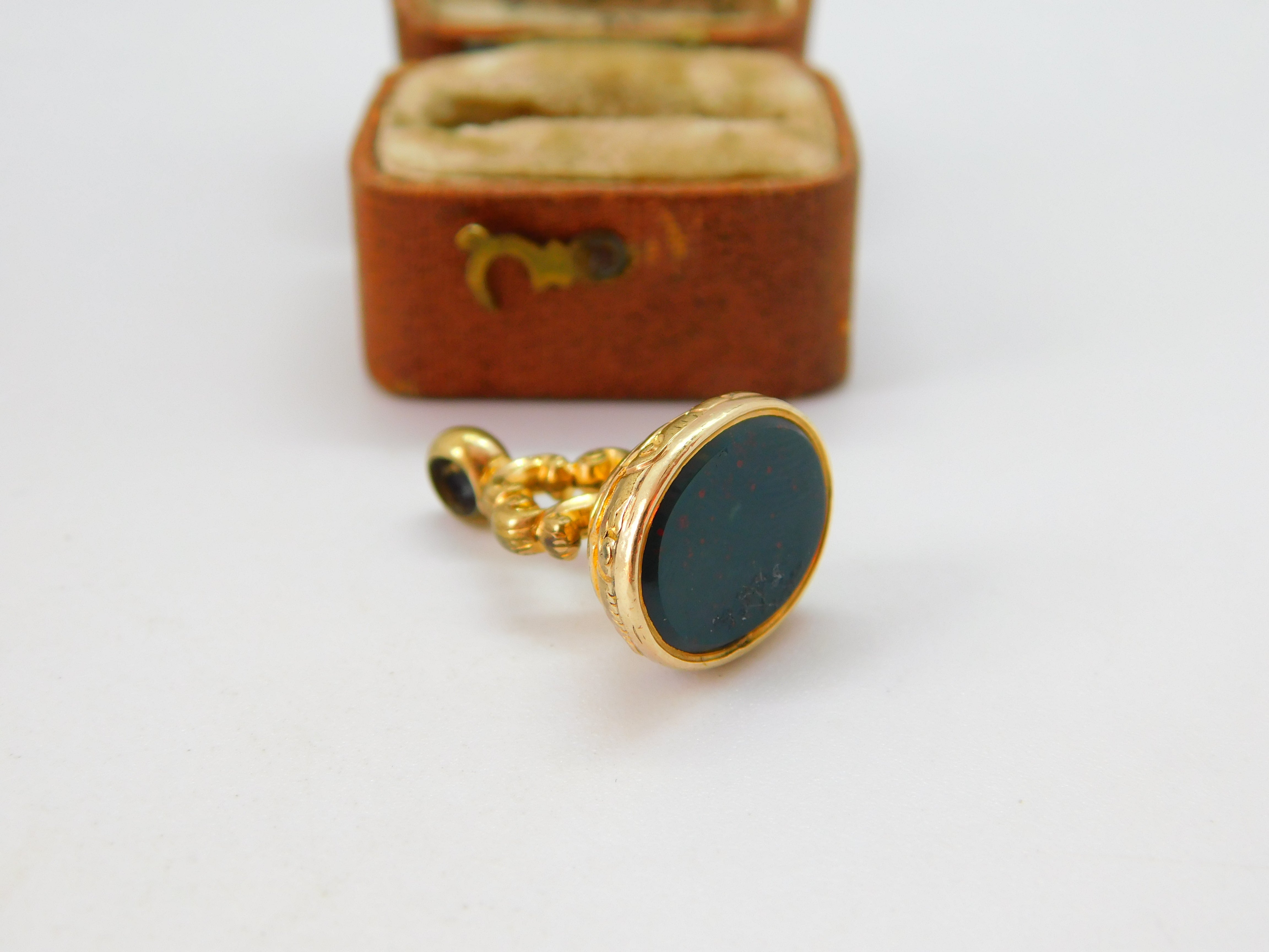 Victorian 9ct Yellow Gold Cased Bloodstone Set Fob Seal Pendant c1880 Antique