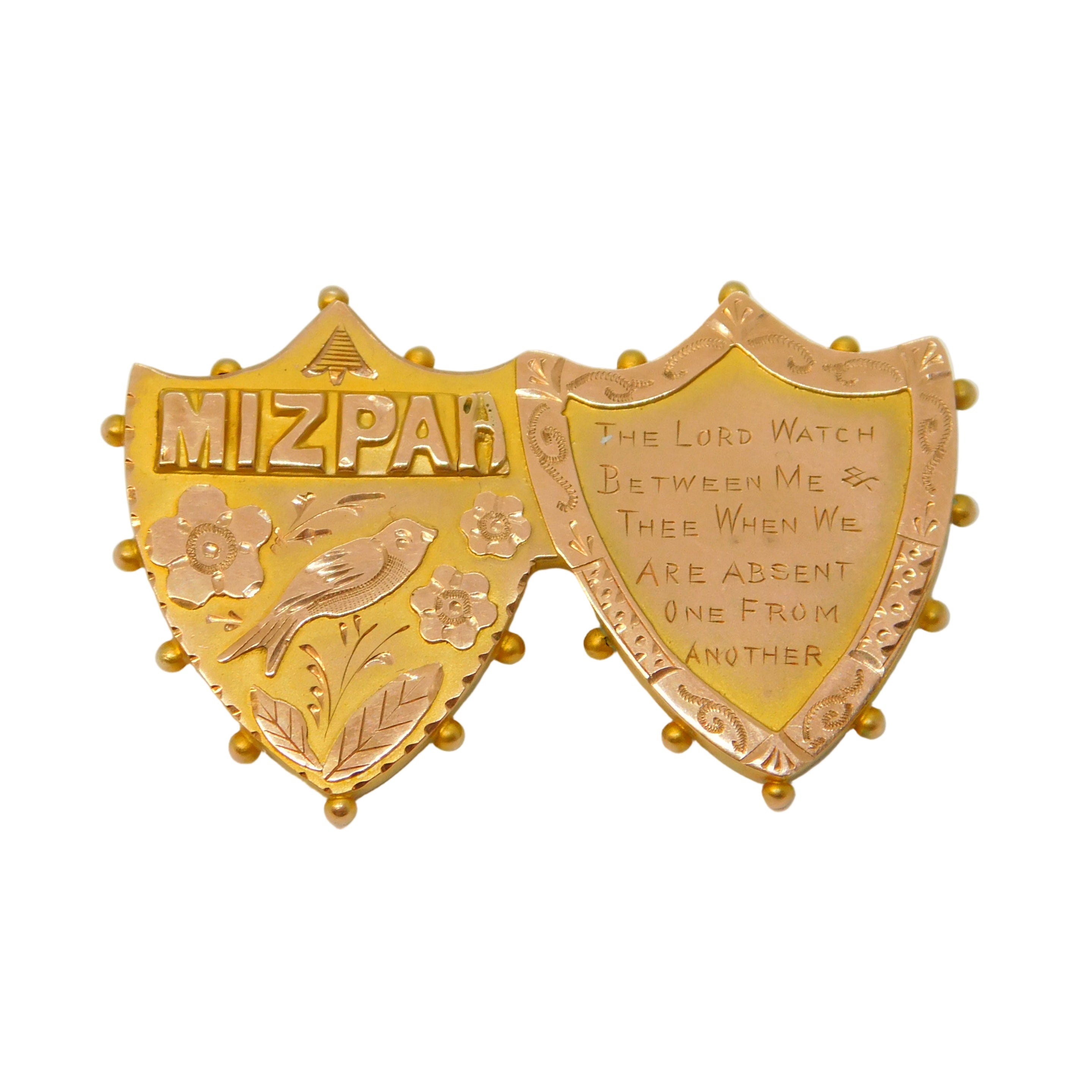 Victorian 9ct Yellow Gold Mizpah Sweetheart Brooch 1877 Birmingham Antique