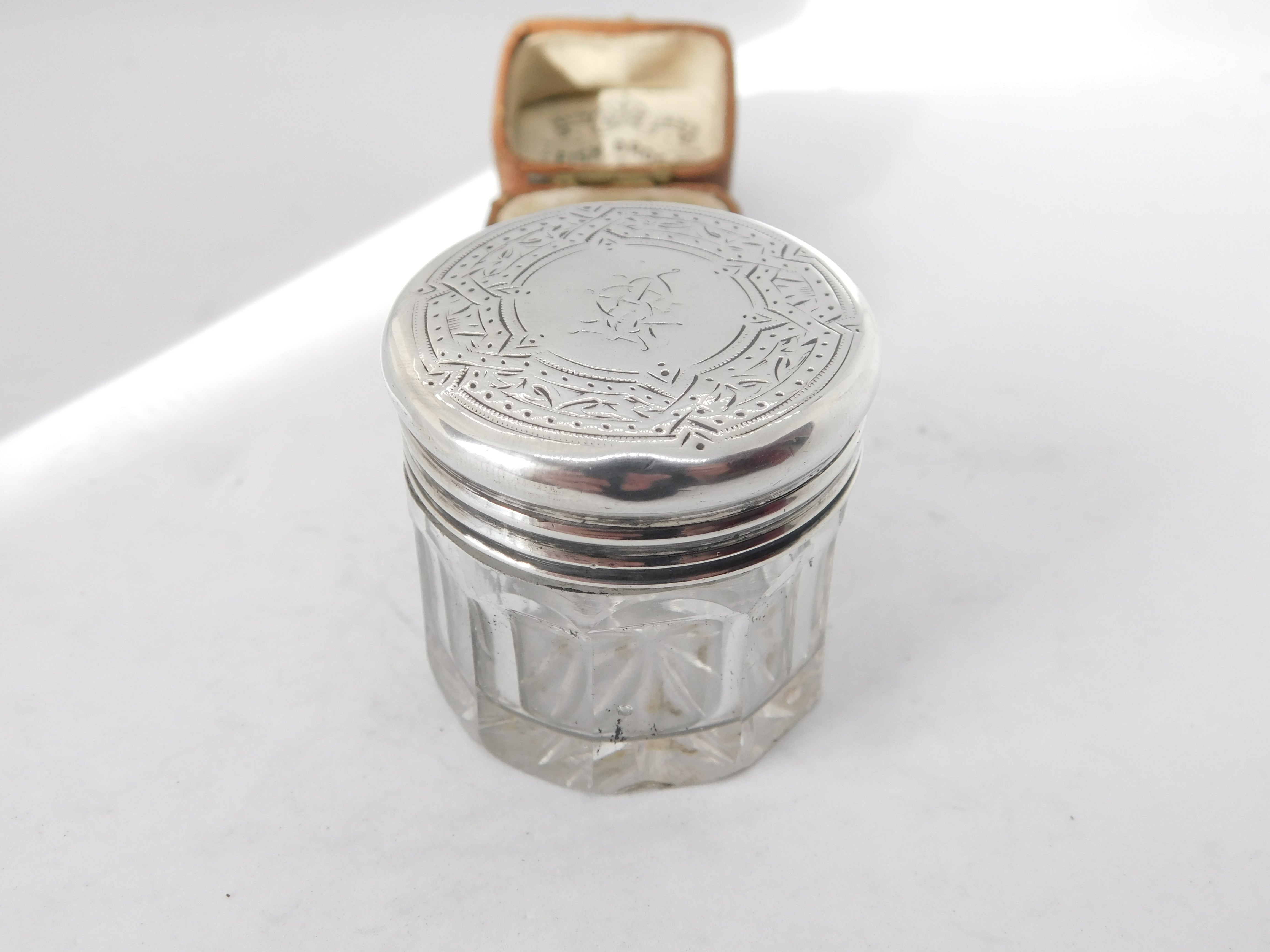 Victorian Asprey Sterling Silver Cut Glass Trinket Pot 1879 London Antique