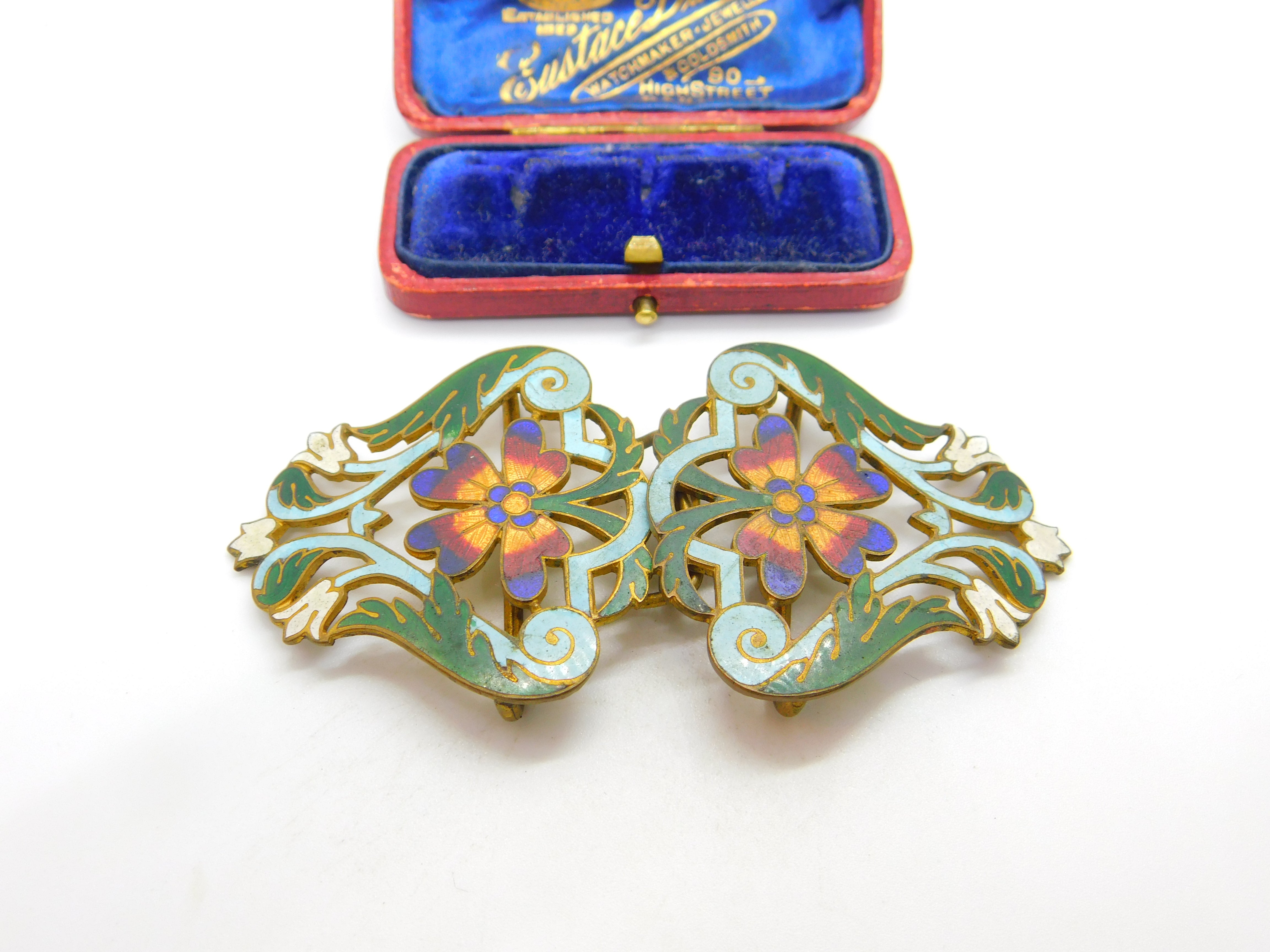 Victorian Art Nouveau Gilt Metal Colourful Enamel Floral Nurses Buckle c1880