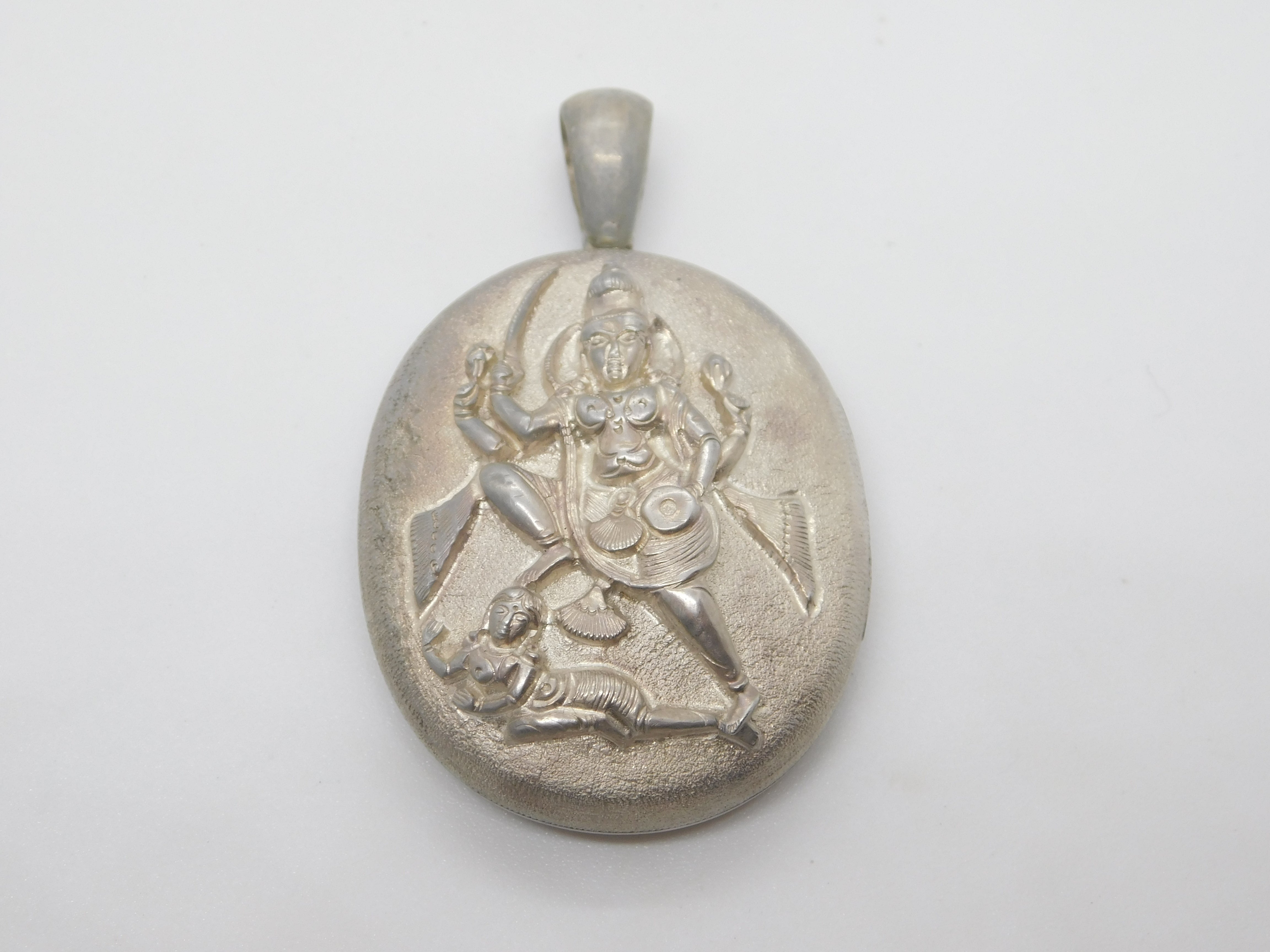 Victorian Anglo-Indian Sterling Silver Large Locket Pendant Antique c1890